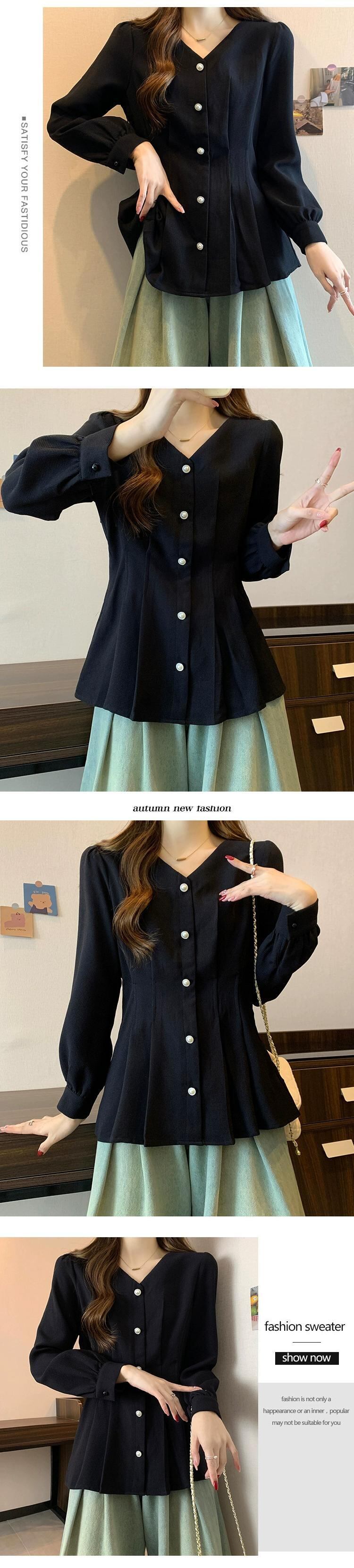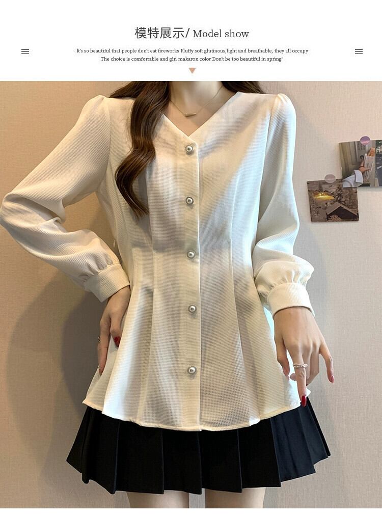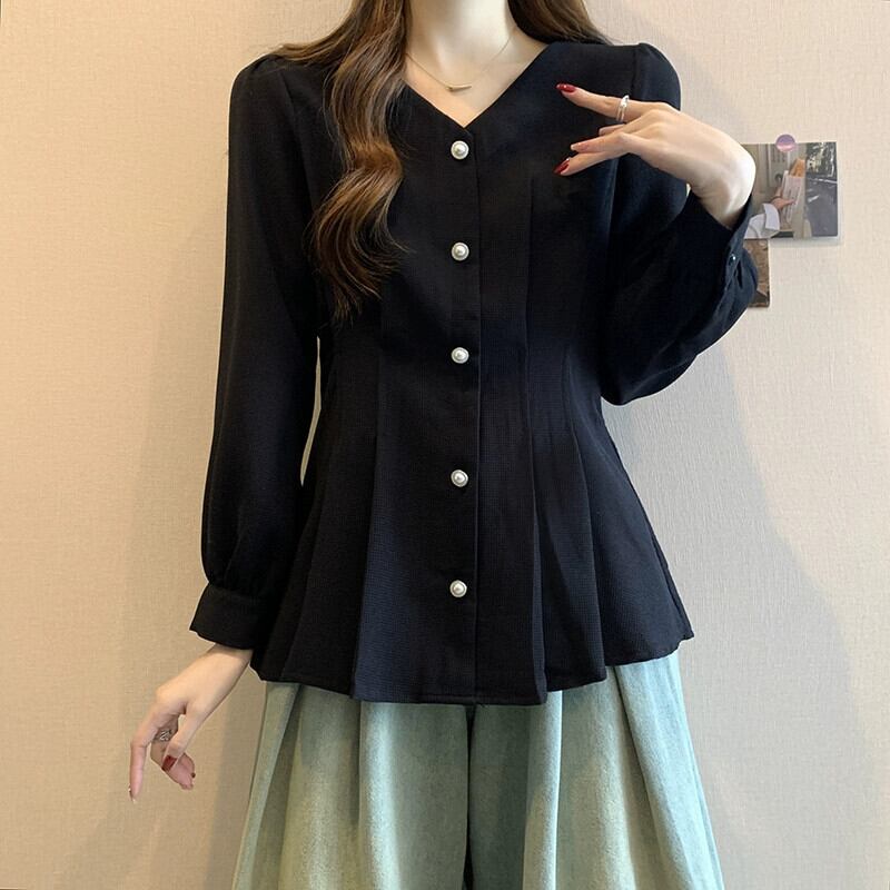 プラスサイズの婦人服ファット mm 春の新 2024 ソリッドカラーのボタン装飾トップス V ネックシンプルファッショナブルでエレガントなシャツ 大きめサイズ スプリング 春物 Vネック 8884163035278108