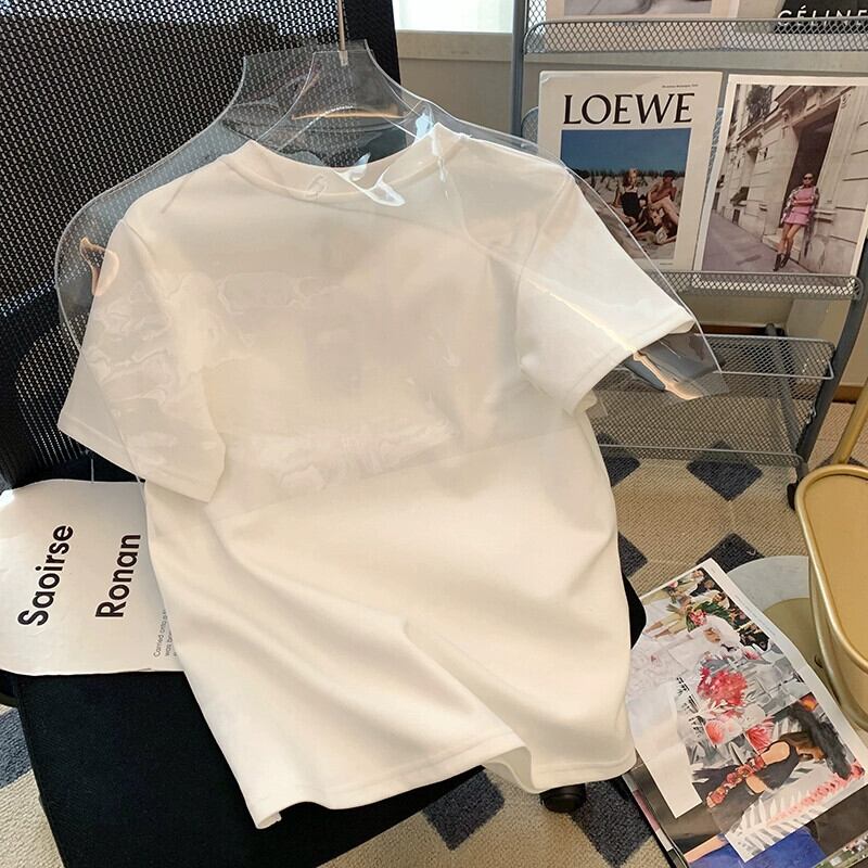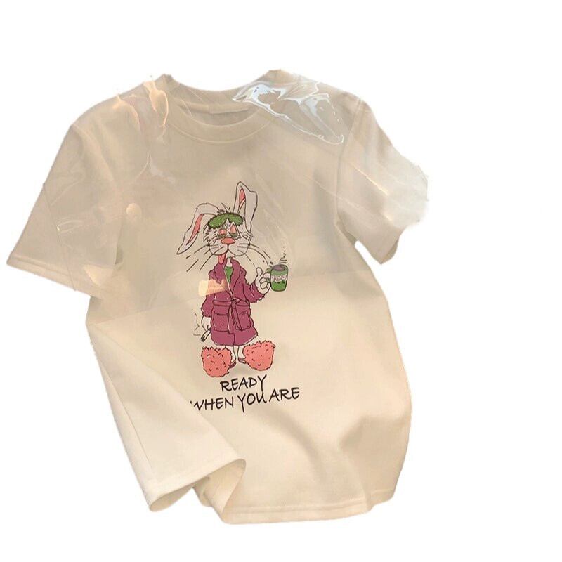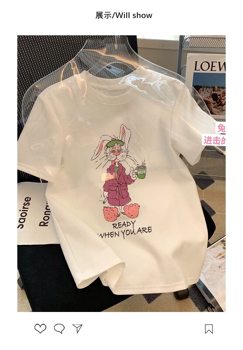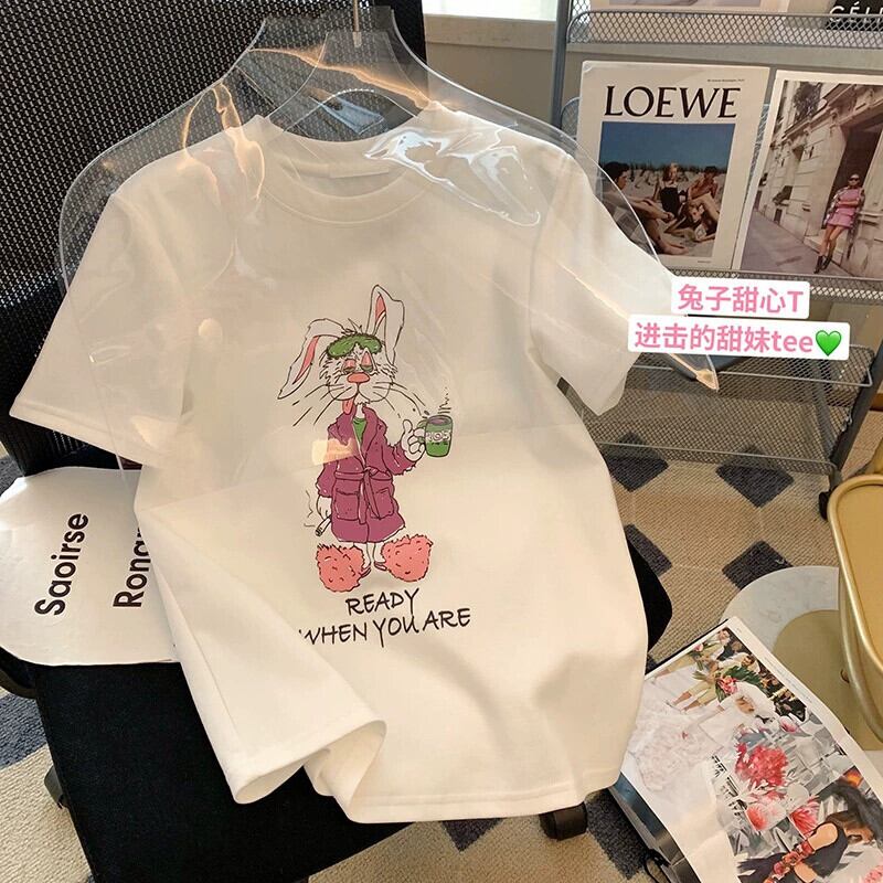 プラスサイズの女性の脂肪 mm 夏新 2024 ホワイトデザインプリントウサギラウンドネック夏半袖 Tシャツ女性 大きめサイズ サマー 夏物 Oネック 8884171016633621