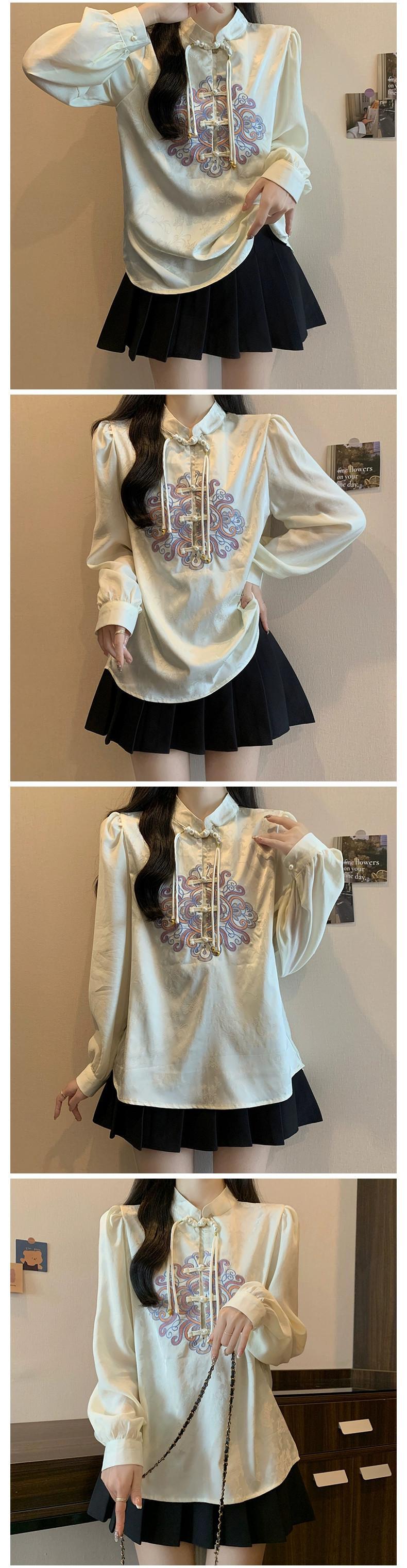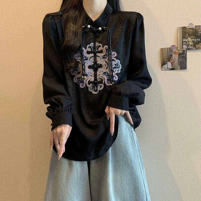 プラスサイズの女性の脂肪 mm 春の新スタイル 2024 国民スタイルの刺繍ルーズ Tシャツプレートバックルレトロな気質カジュアルトップ 大きめサイズ スプリング 春物 8884150300122072