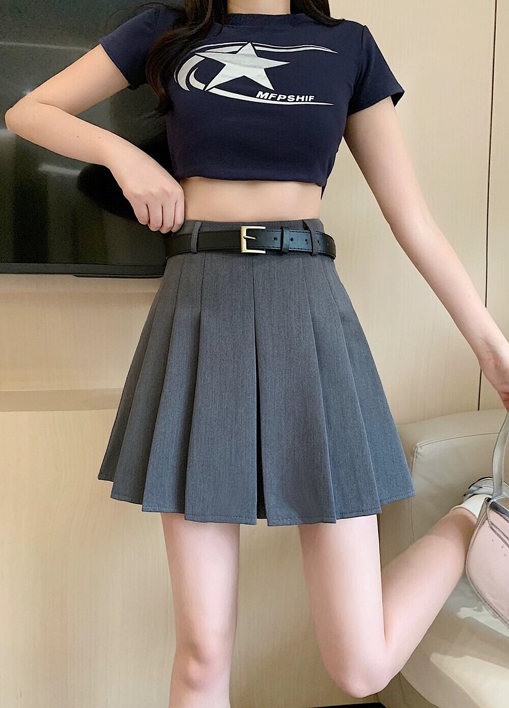 大きいサイズの洋ナシ型ボディスカート女性の夏 2024 新しいハイウエスト痩身 A ラインスカートカバー腹プリーツショートスカート 大きめサイズ サマー 夏物 Aライン 8884161760440384