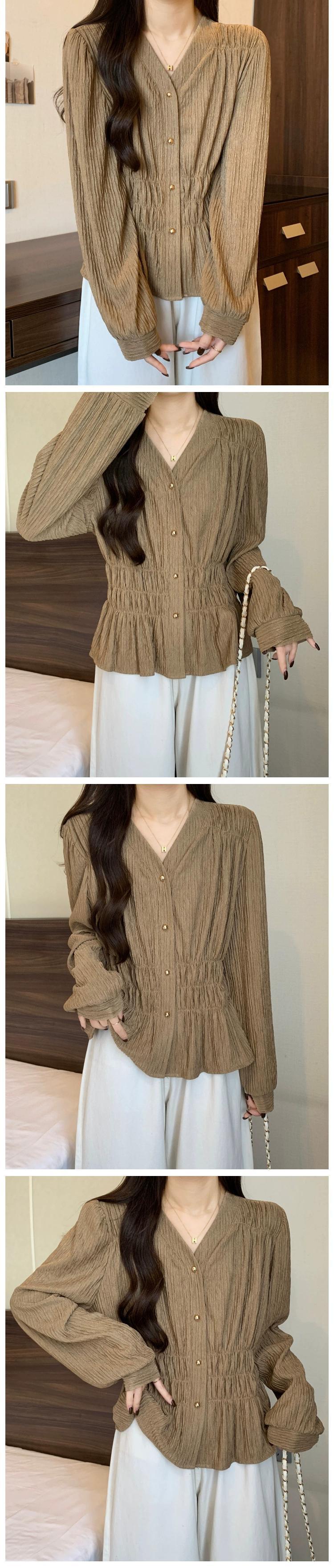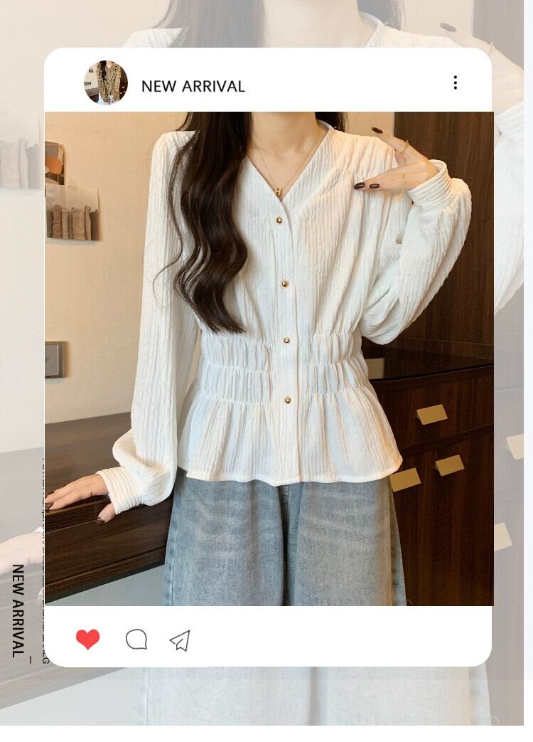プラスサイズの婦人服ファット mm 夏の新スタイル 2024 ファッショナブルで多用途なスリム V ネック長袖無地美しいシャツトップス ロング 大きめサイズ サマー 夏物 Vネック ソリッドカラー 8884179556117025