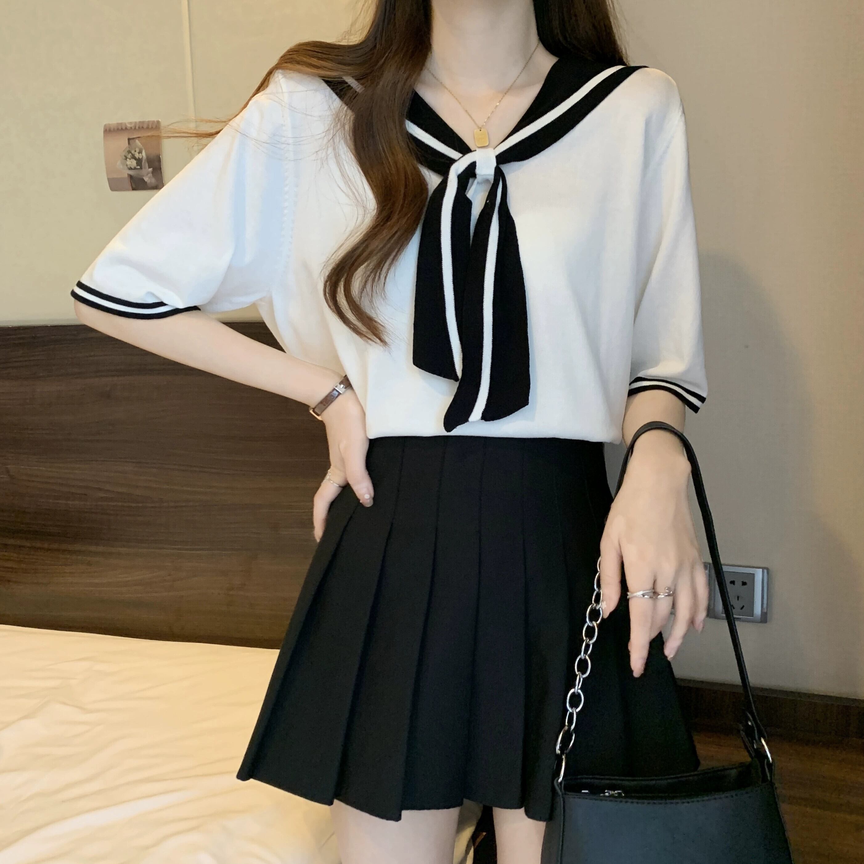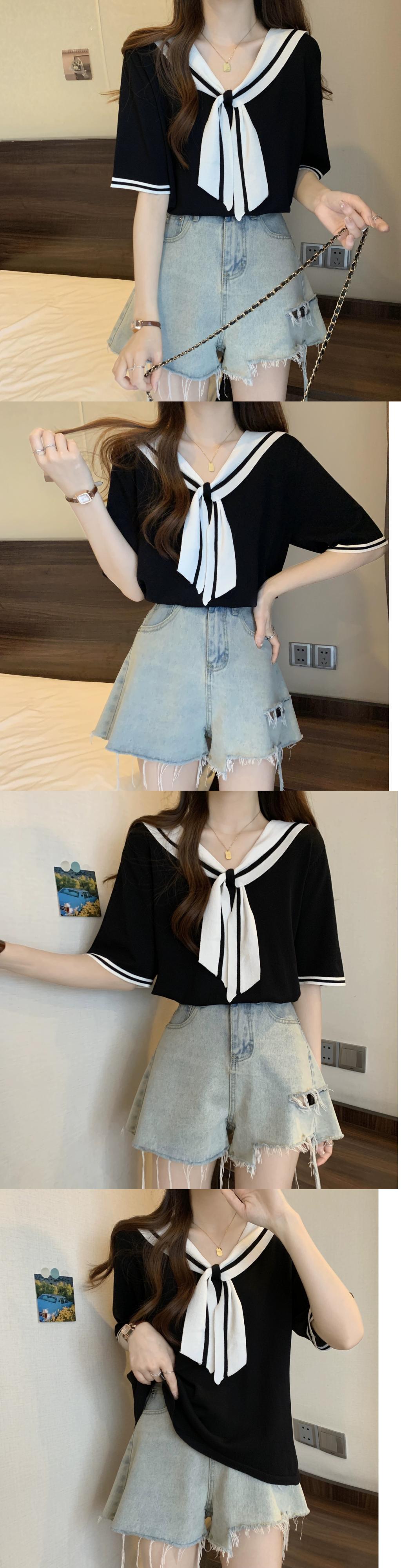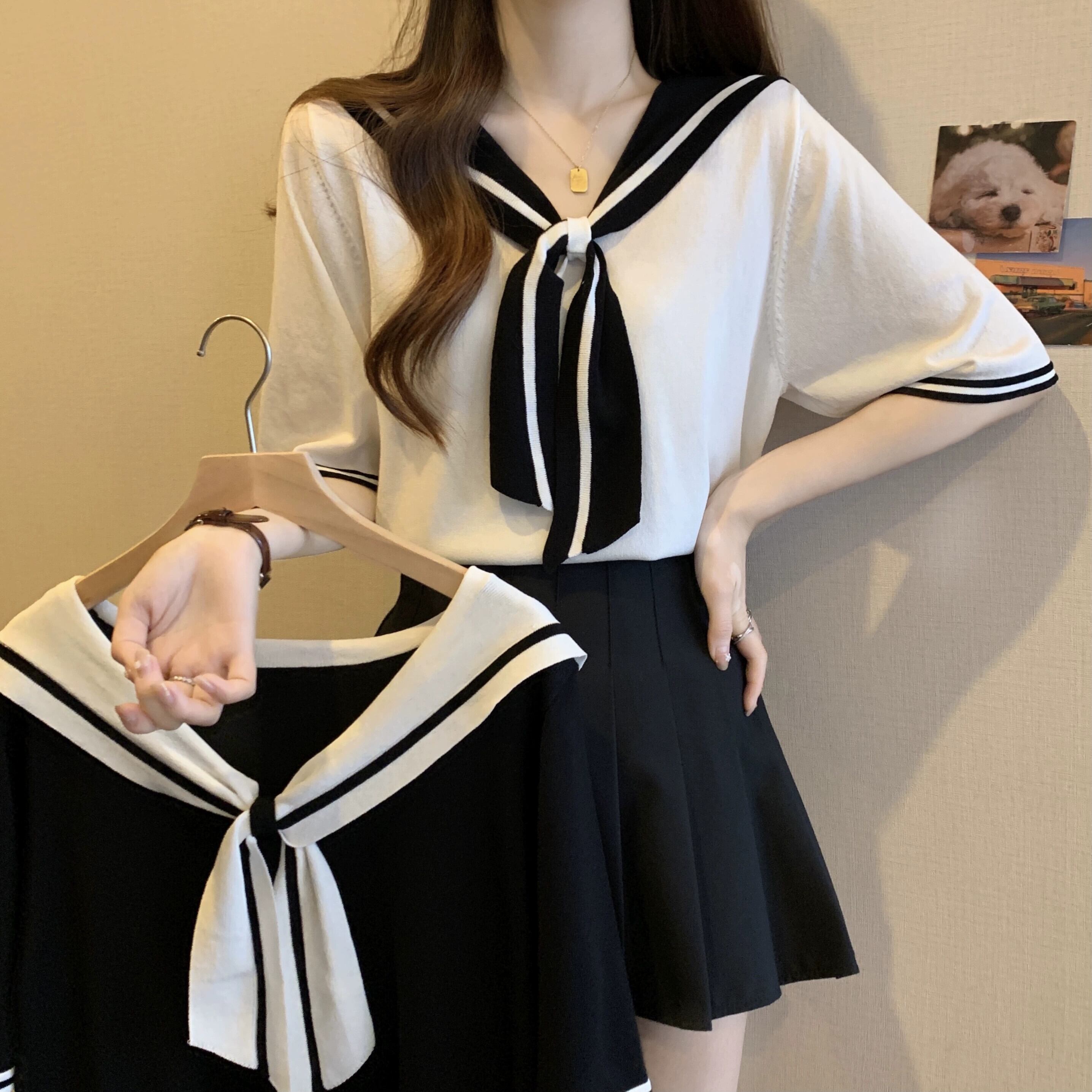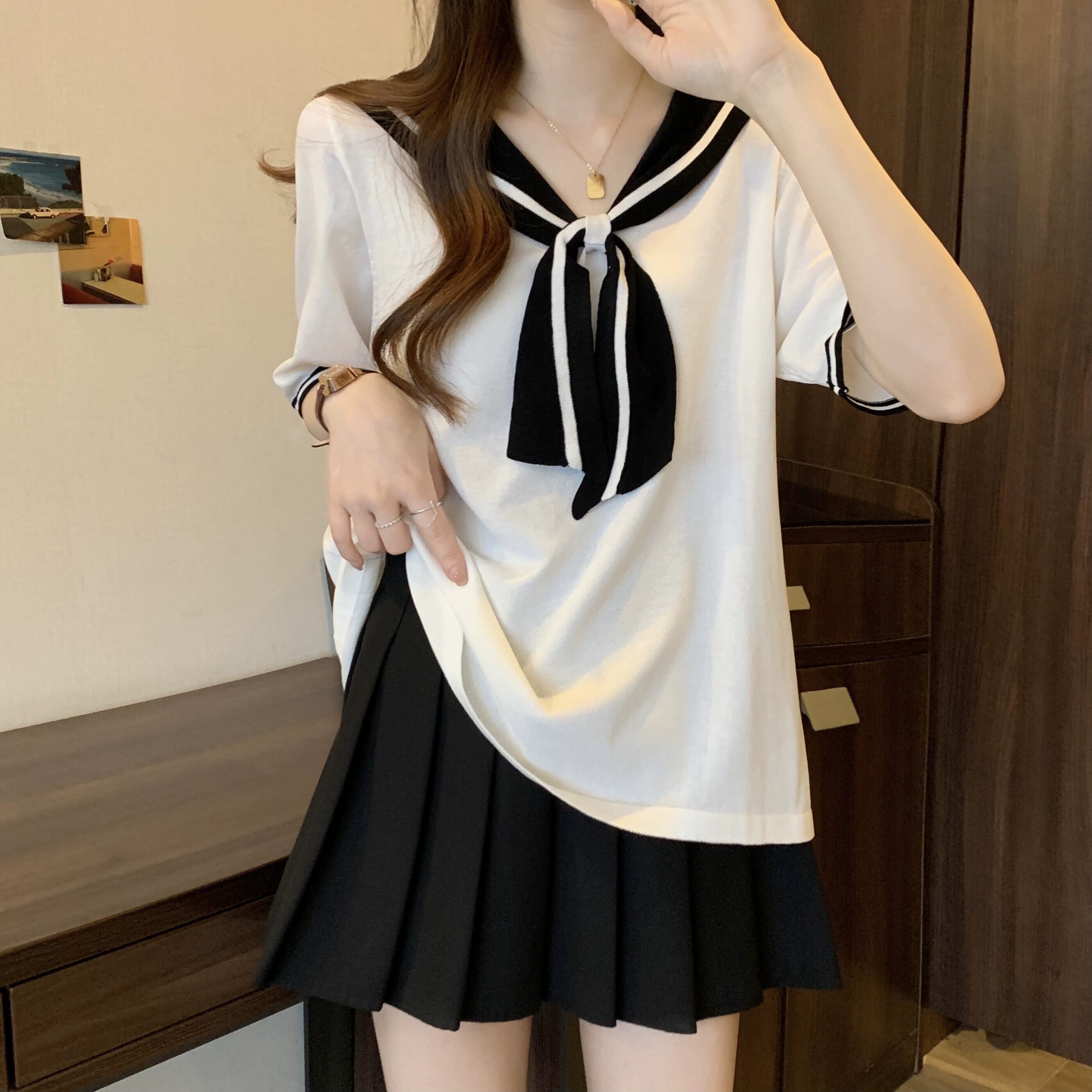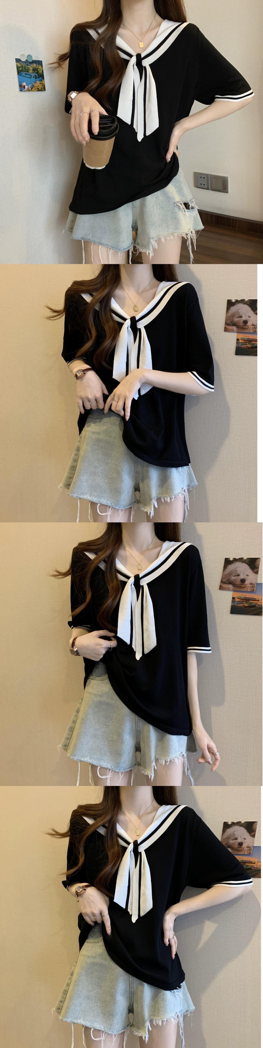 プラスサイズの女性の脂肪mm夏の新しいスタイル2024ネイビーカラー半袖Tシャツは肉をカバーし、スリムに見えるカジュアルデザイントップ 大きめサイズ サマー 夏物 8884197418556803