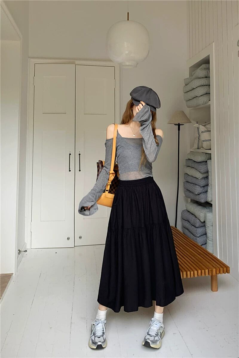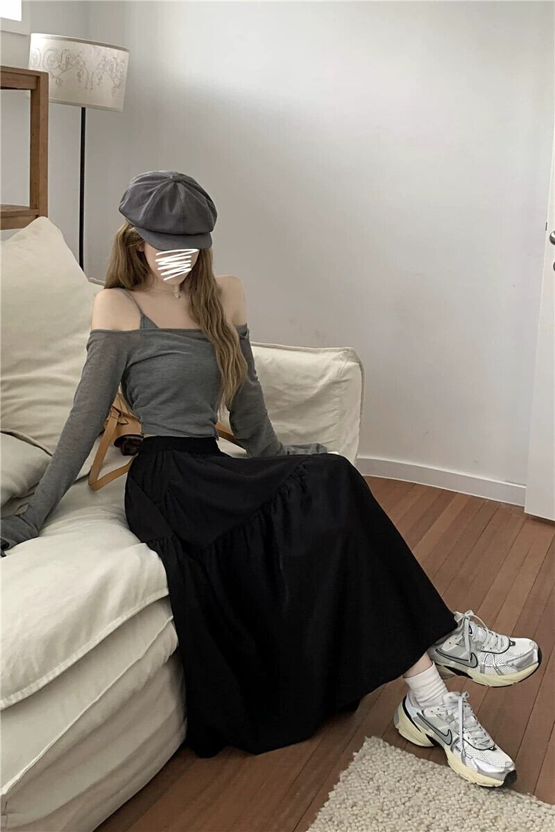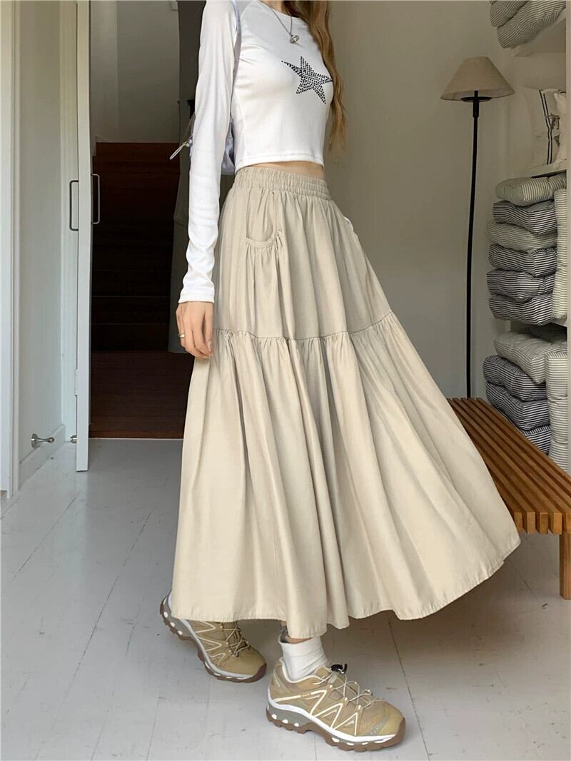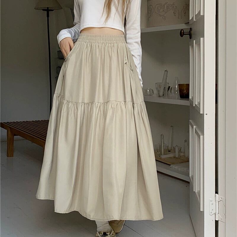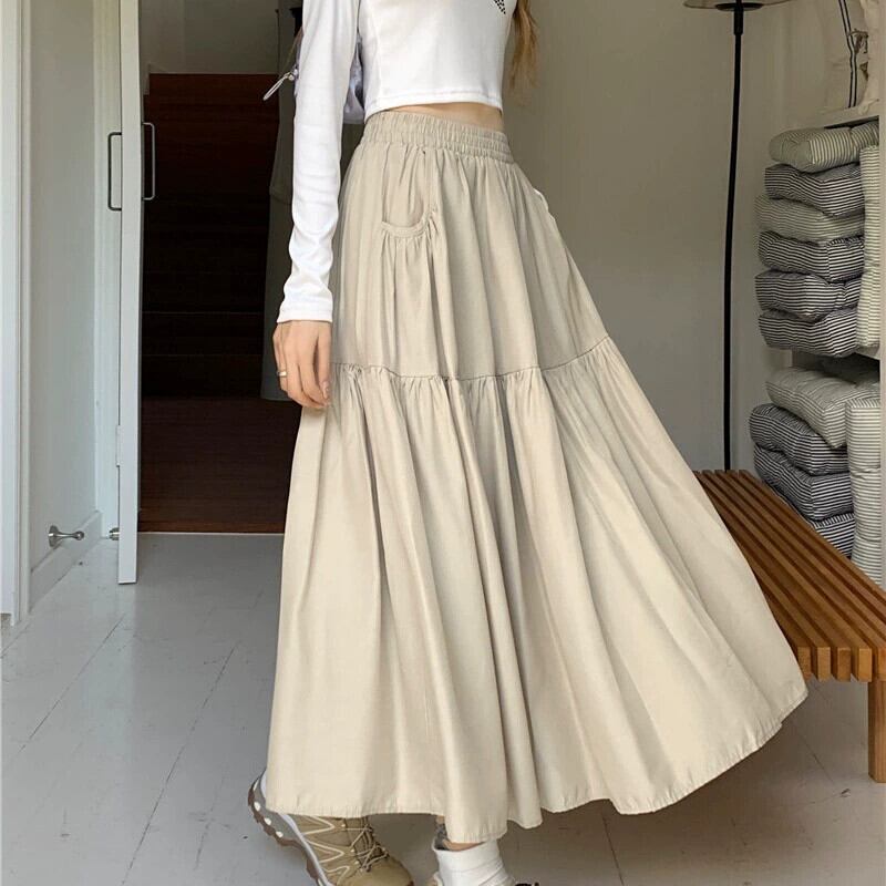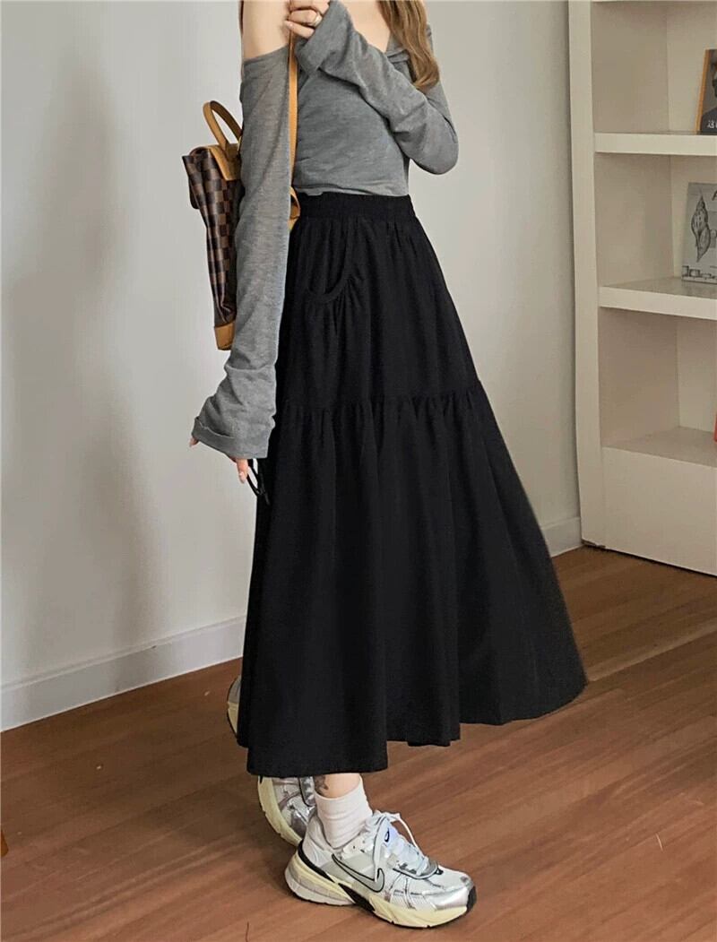 プラスサイズの婦人服ファットミリメートル春の新スタイル 2024 カジュアルポケットミッドレングススカート多用途 A ライン大きな裾スカートスリムアンブレラスカートを表示 大きめサイズ スプリング 春物 Aライン 888417045167775