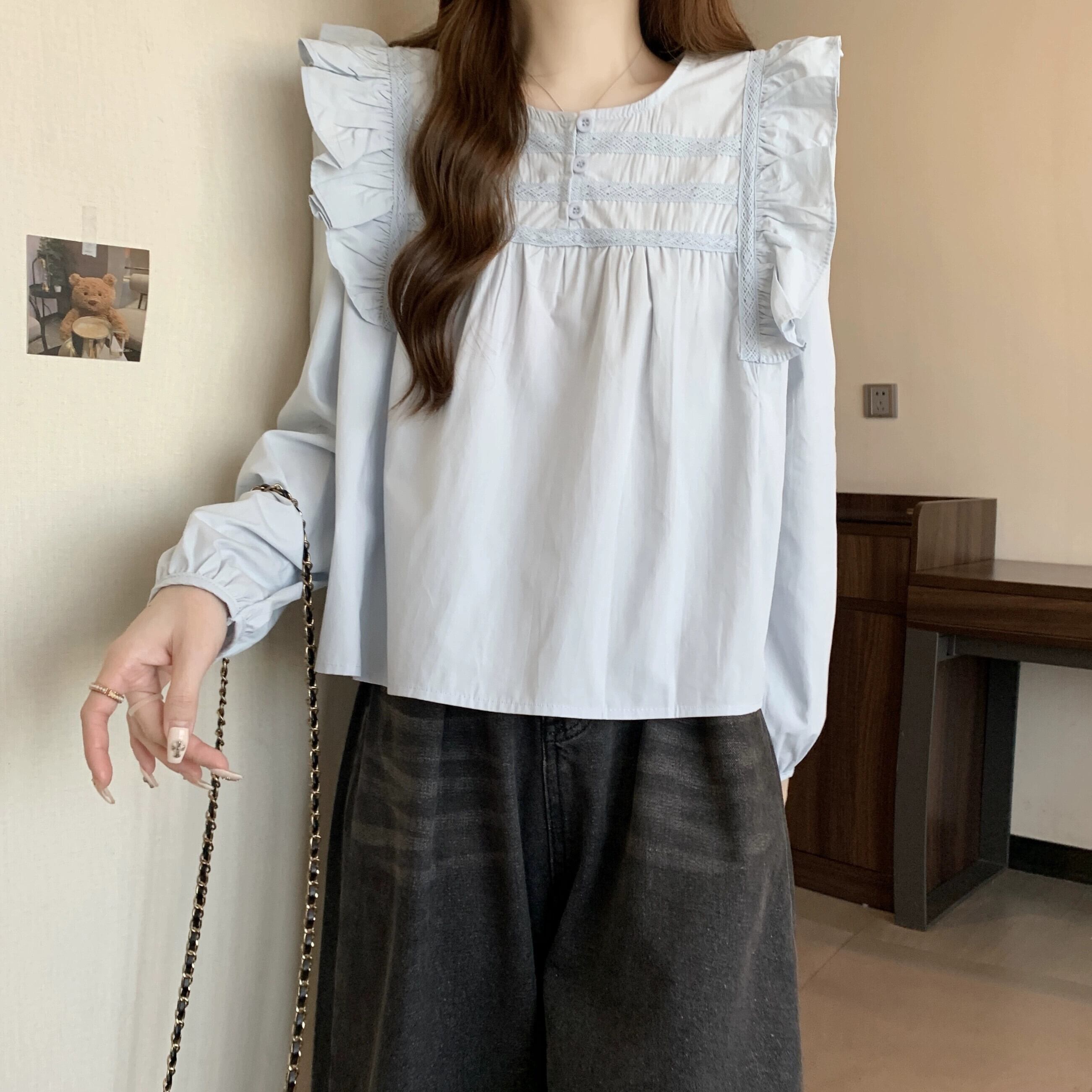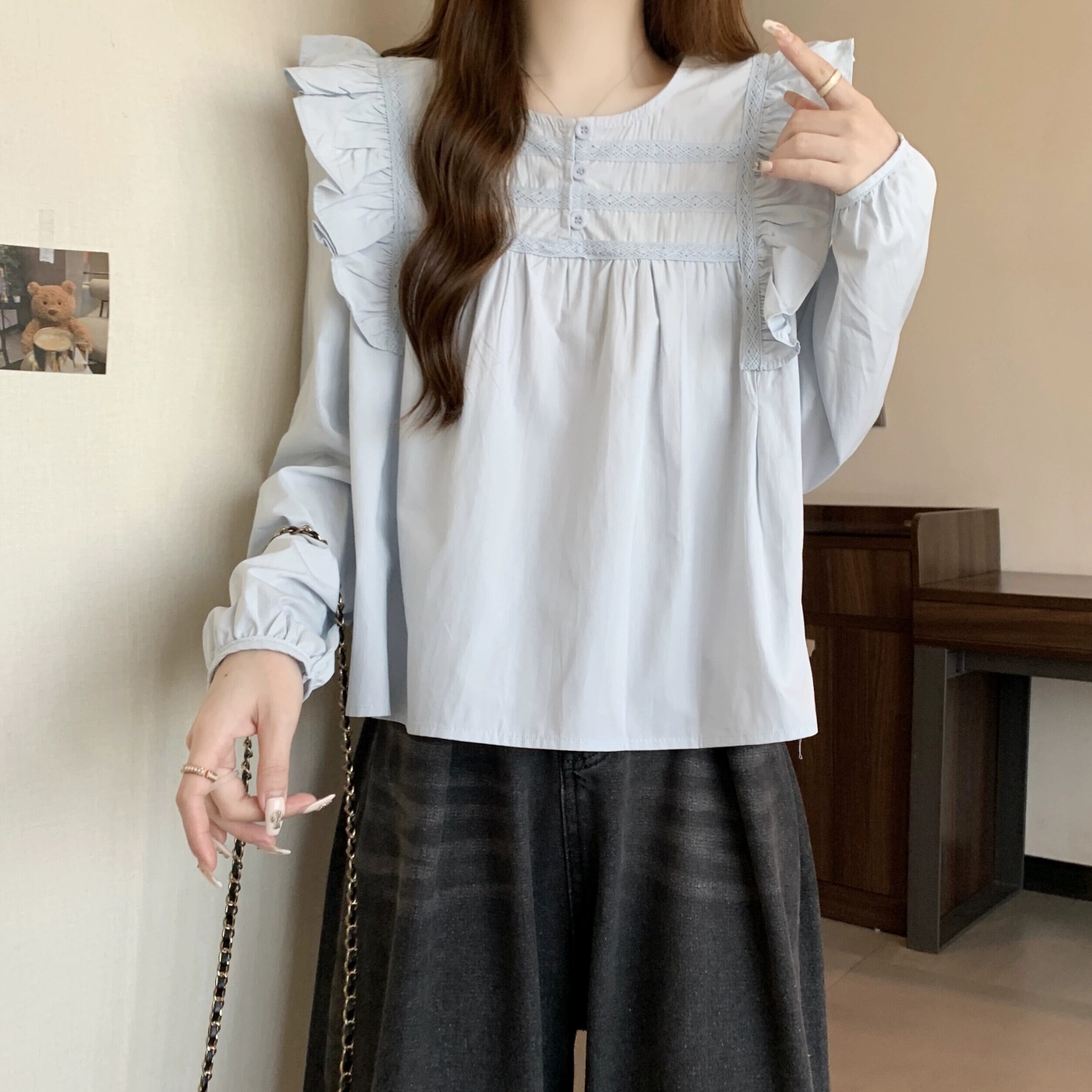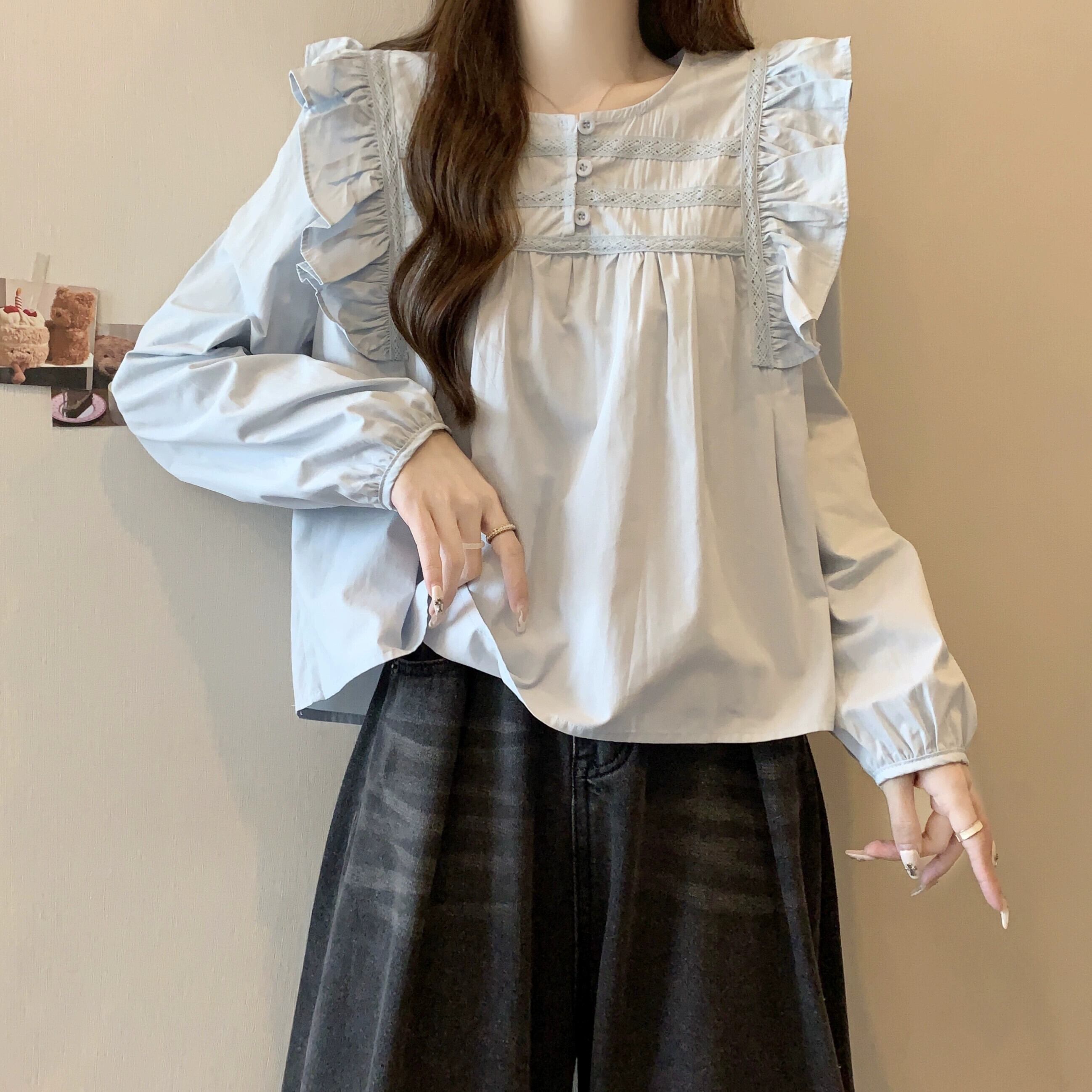 プラスサイズの女性の脂肪 mm 春の新しいスタイル 2024 デザイン多用途シフォンシャツニッチ無地肌カバートップス年齢軽減 大きめサイズ スプリング 春物 ソリッドカラー 8884141377309697