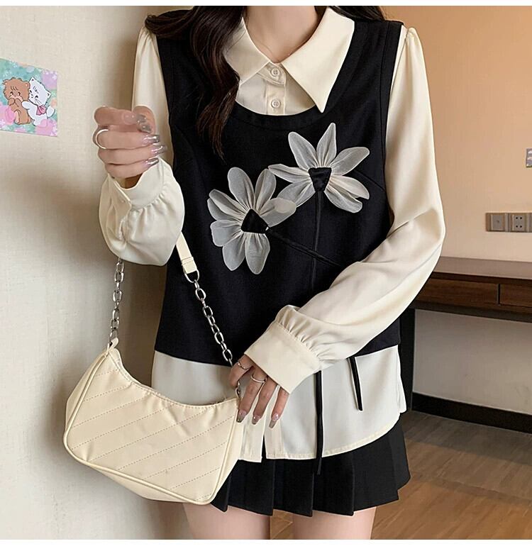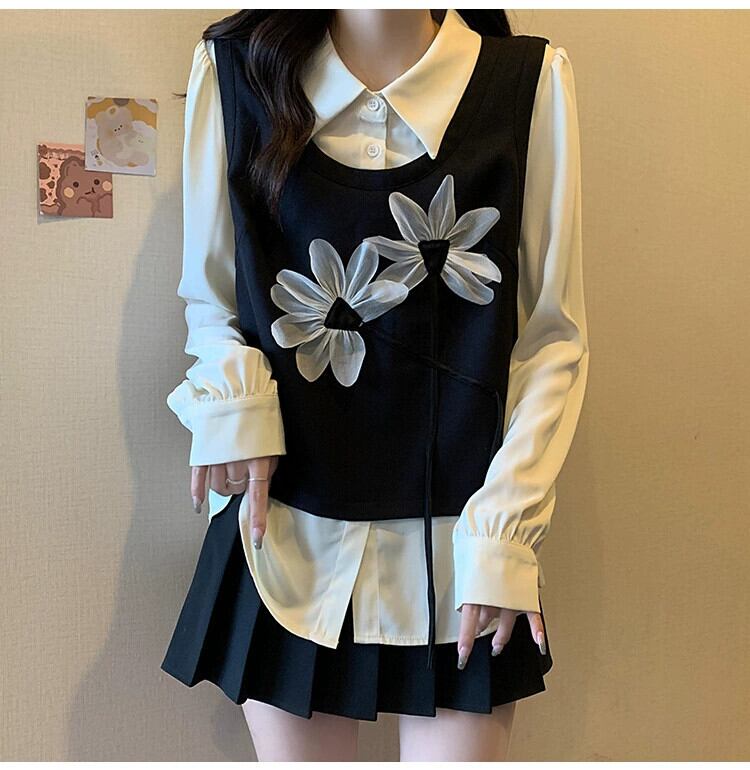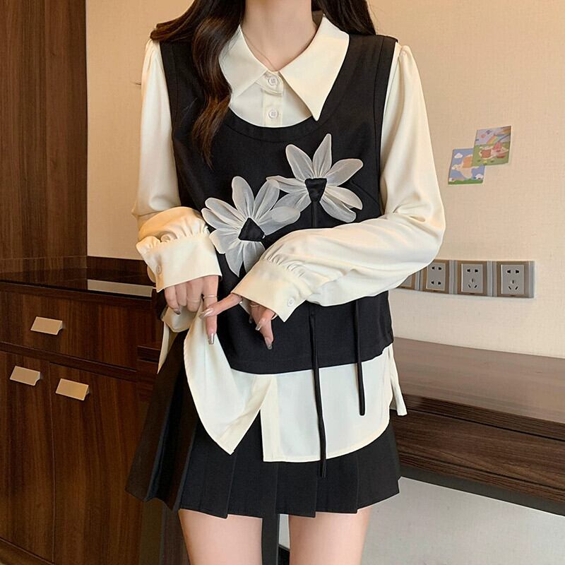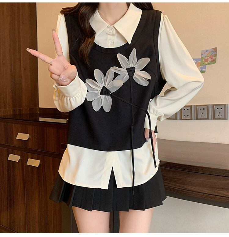 プラスサイズの婦人服ファット mm 春の新 2024 フラワーシャツ偽ツーピース eign デザインフランス長袖トップス ロング 大きめサイズ スプリング 春物 フラワーデザイン 8884131403623849