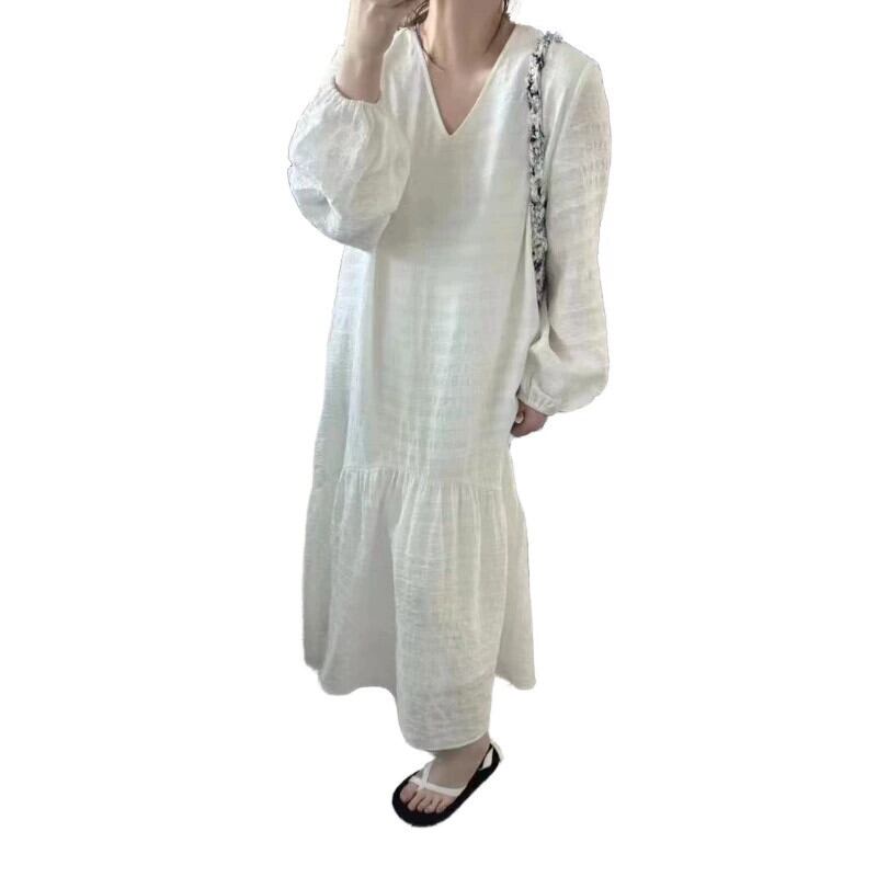2024 フレンチスウィートシフォンドレス女性春の妖精スーパー妖精初恋ドレスレース V ネックロングドレス 大人ガーリー キュート カジュアル スプリング 春物 Vネック 8884170067335364