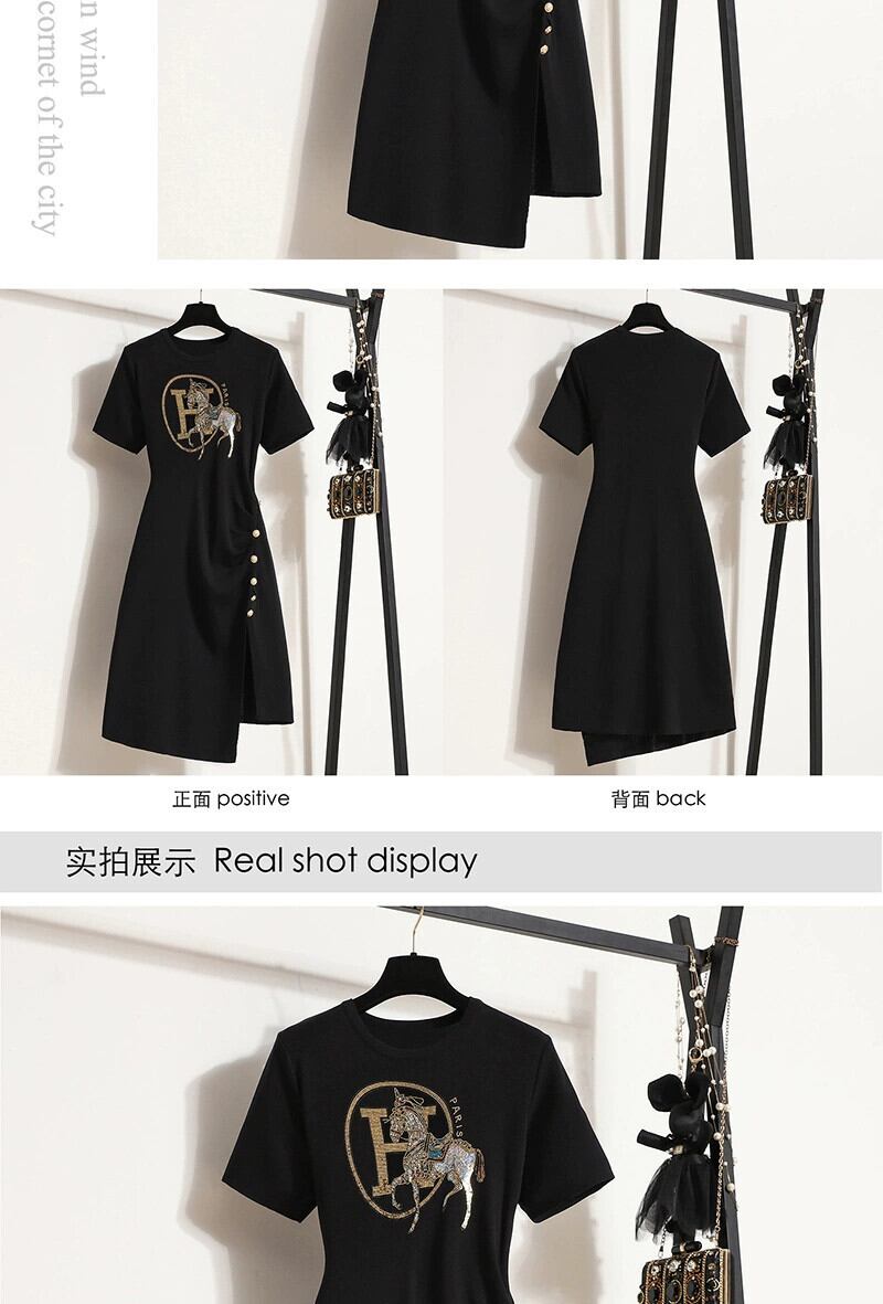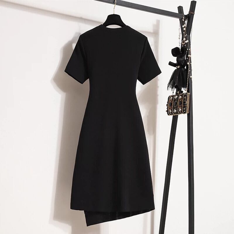 プラスサイズの婦人服ファットミリメートル春の新 2024 フレンチヘップバーンスタイル不規則なニットドレス慎重なマシンスカート 大きめサイズ スプリング 春物 8884124861479594