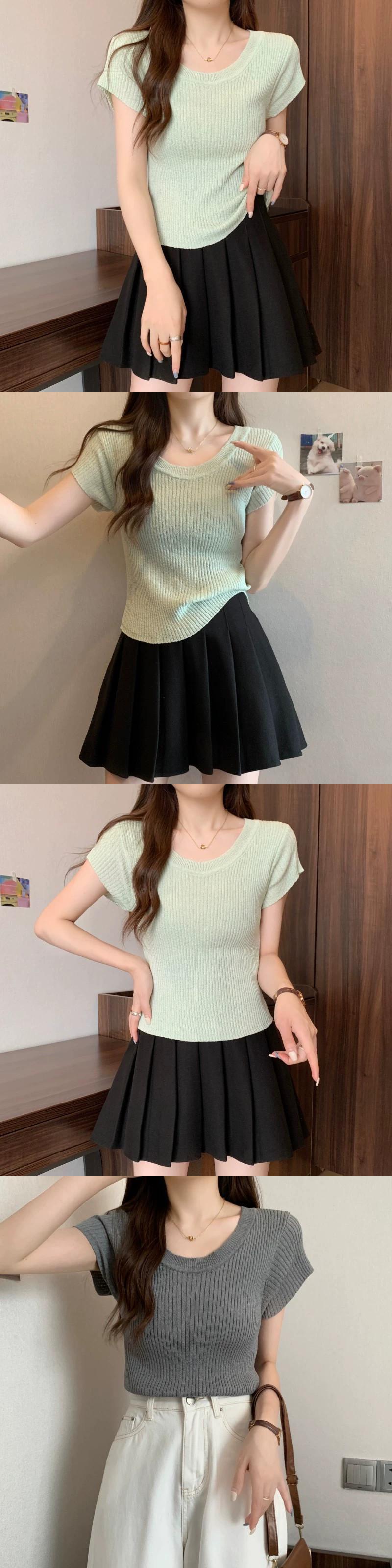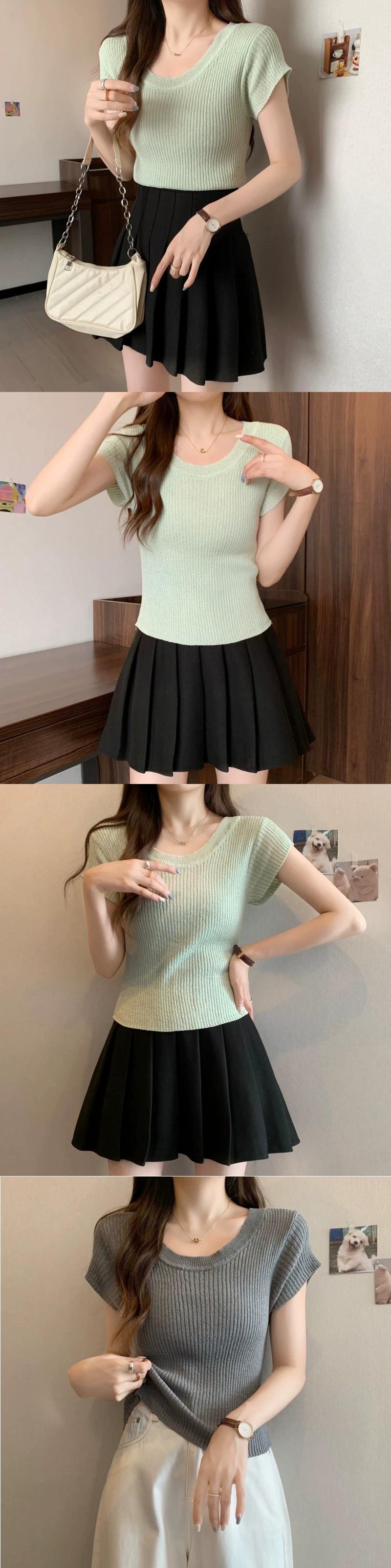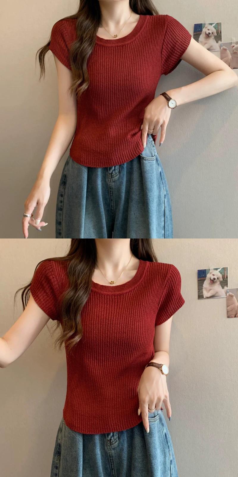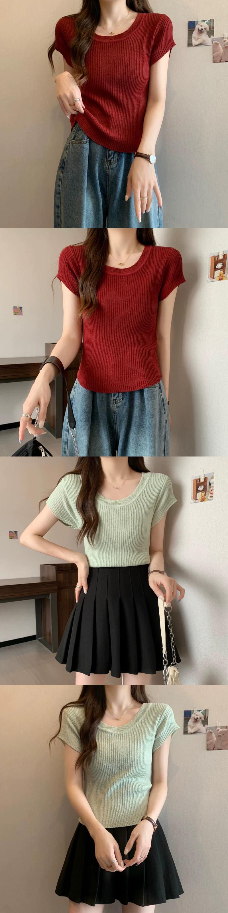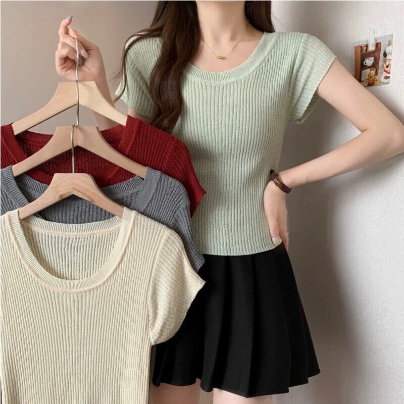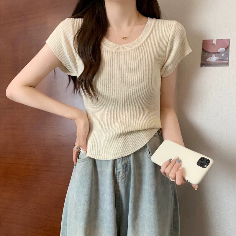 プラスサイズの婦人服ファット mm 夏の新スタイル 2024 バージョンスリムフィット多用途ピットストリップデザインニット半袖トップス女性 大きめサイズ サマー 夏物 8884153462733338