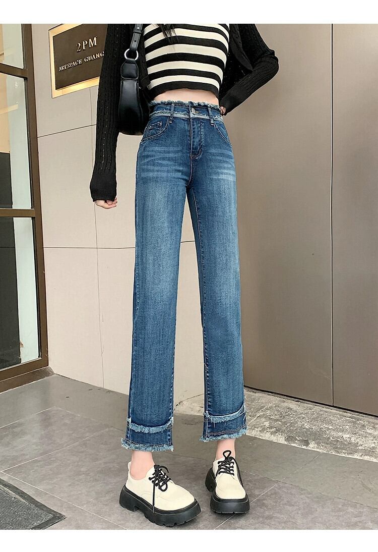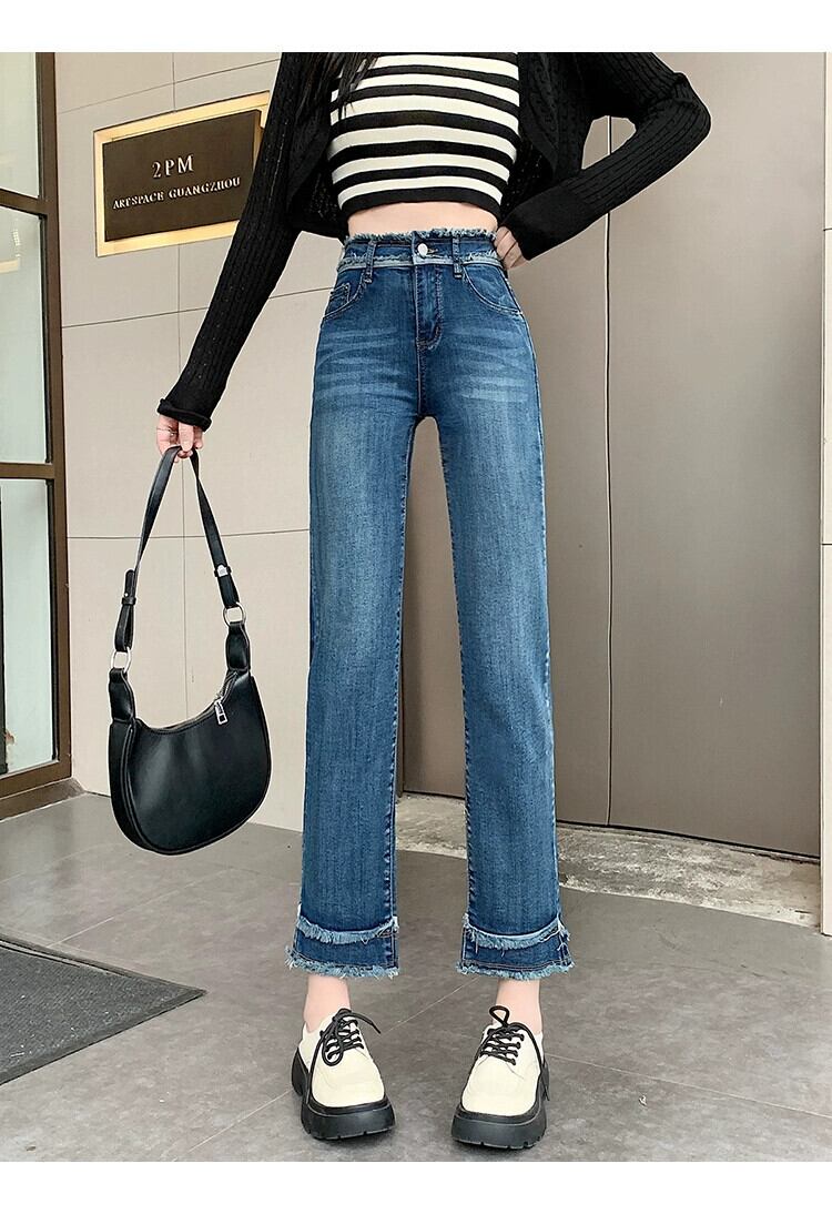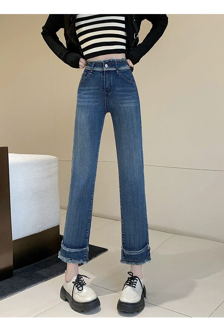 プラスサイズの女性のファット mm 春の新スタイル 2024 シックなハイウエスト 9 ポイント ジーンズ、股をカバーするカジュアル ファッション ストレート パンツ ハイウェスト 大きめサイズ スプリング 春物 8884148344944070