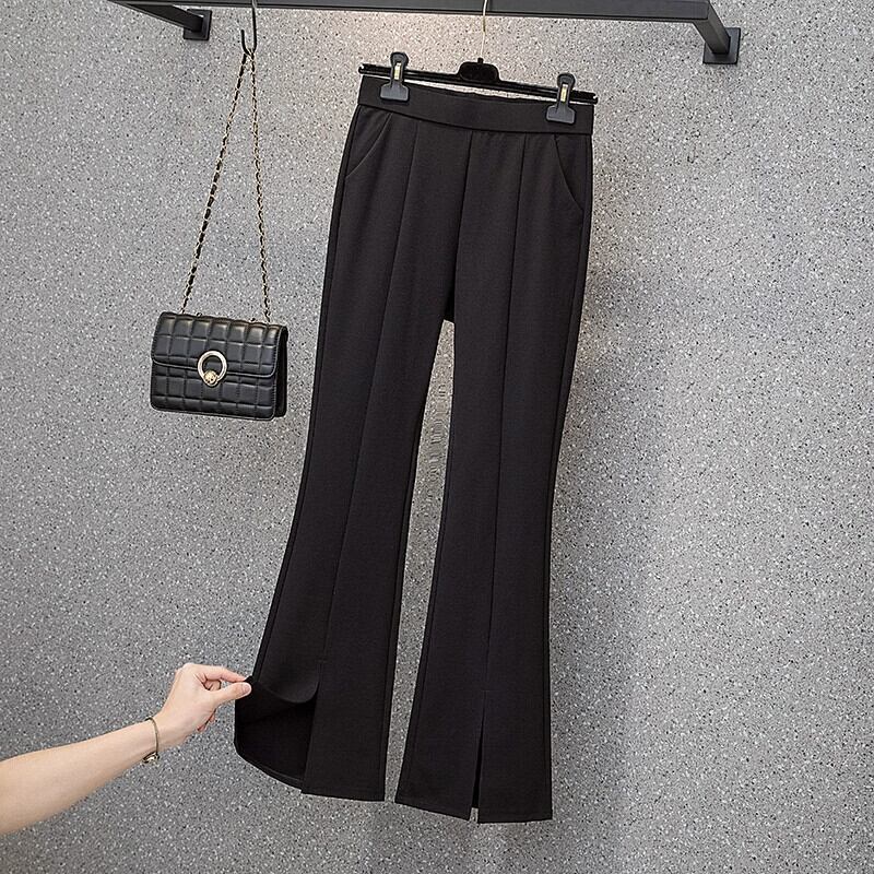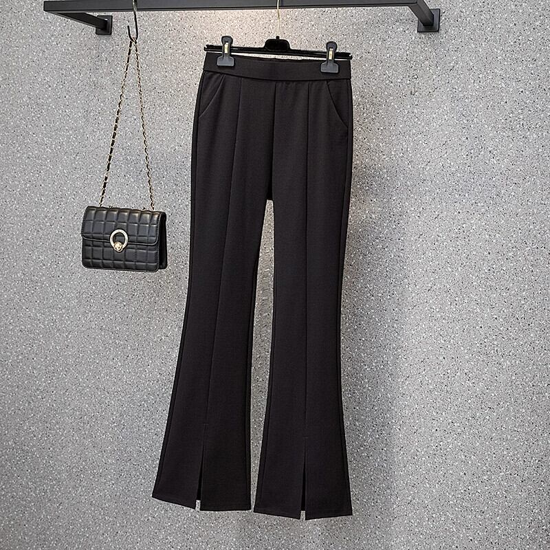 プラスサイズの女性の 2023 夏服ファットシスターわずかにフレアパンツスリットウエストスーツパンツ 9 点パンツ長ズボン ロング レッド 大きめサイズ サマー 夏物 888416729350604
