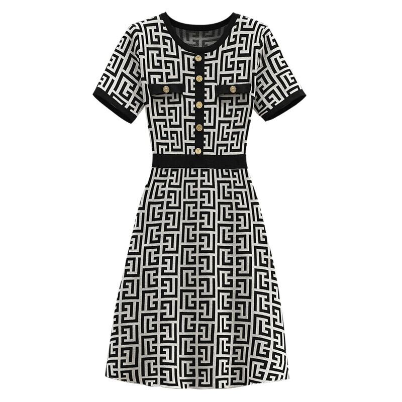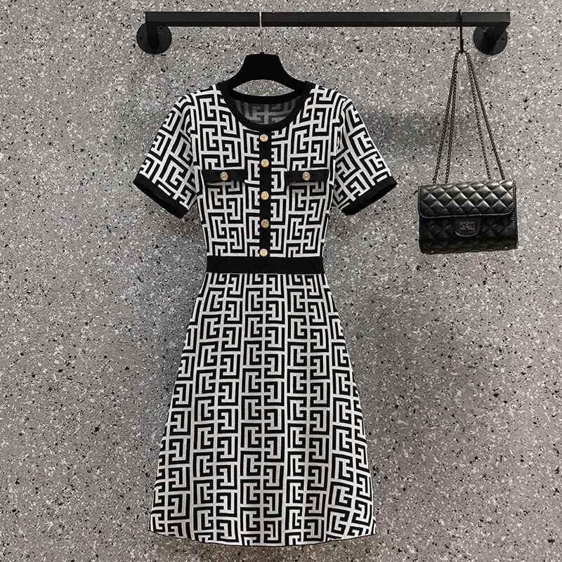 プラスサイズの婦人服ファットmm春の新作2024幾何学的なニットドレスは、肉をカバーし、汎用性があり、スカートの女性を細くします 大きめサイズ スプリング 春物 888412727472537