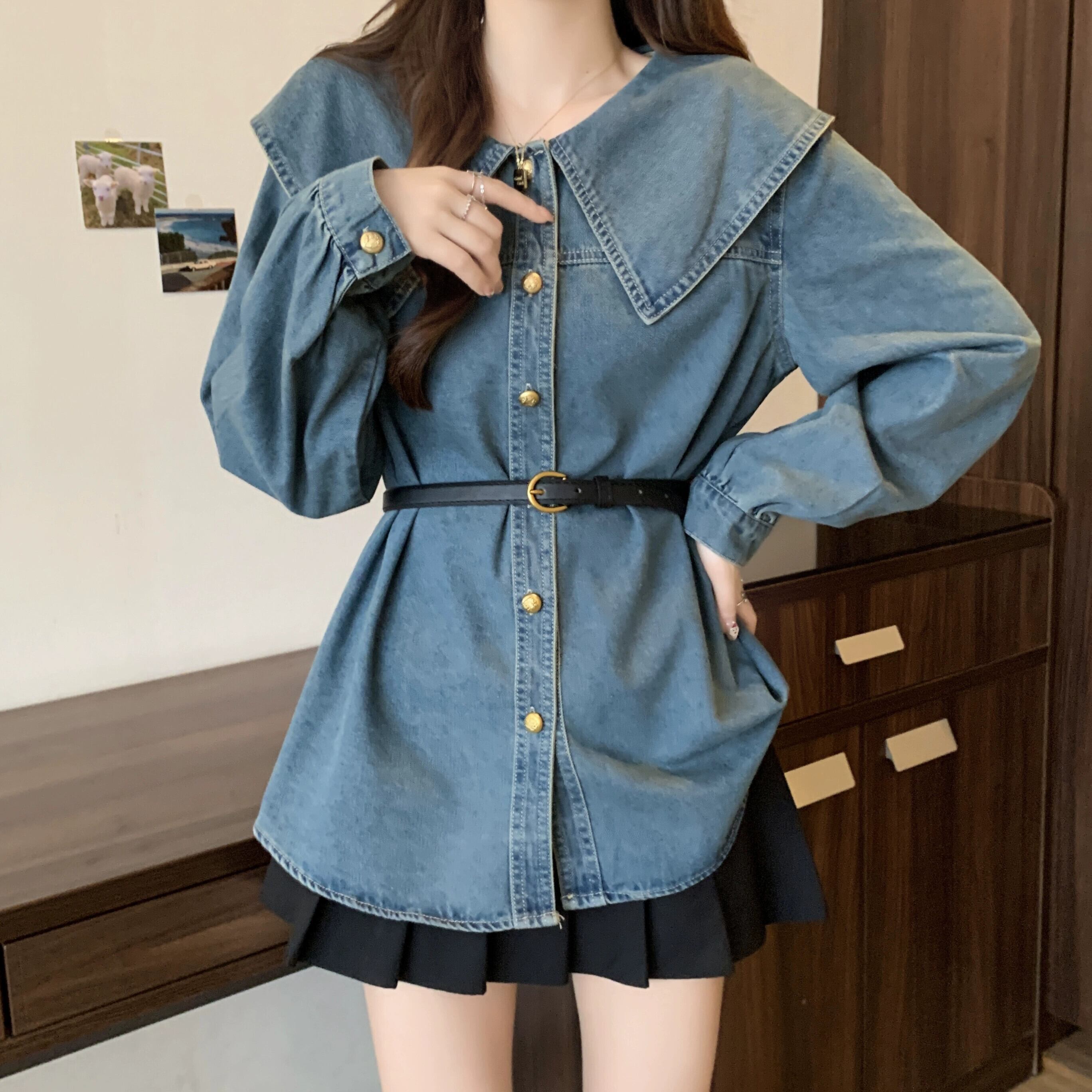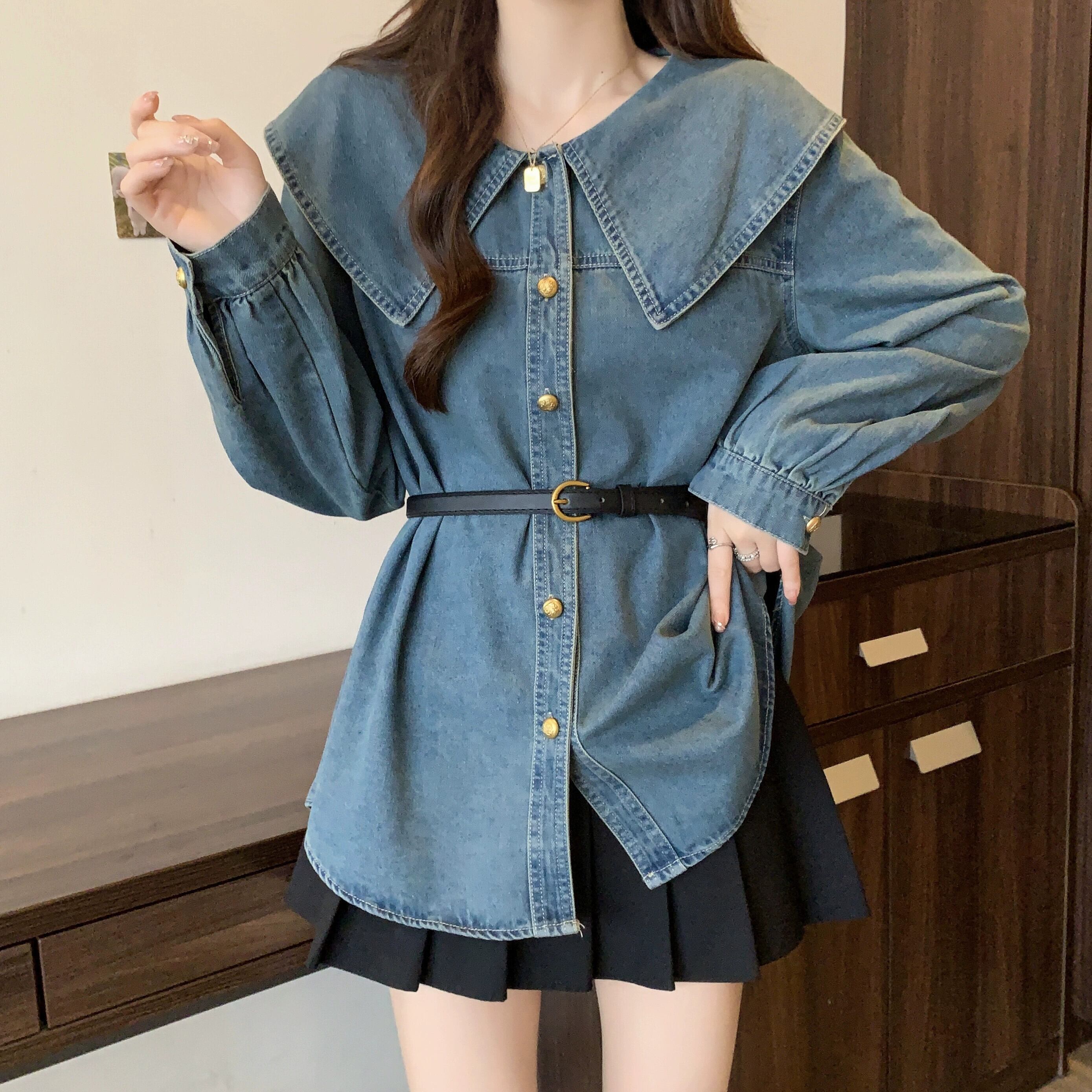 プラスサイズの婦人服太mm春の新スタイル2024デザイン、肉をカバーしてスリムに見せますブルーデニムジャケットバージョン緩い女性 大きめサイズ スプリング 春物 8884165507211275