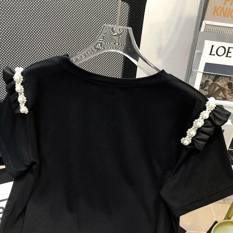 プラスサイズの婦人服 2024 ファットシスター夏新スタイルフランス菌ヘビークラフトデザイン半袖ルーズ Tシャツ 大きめサイズ サマー 夏物 841S1684767905112