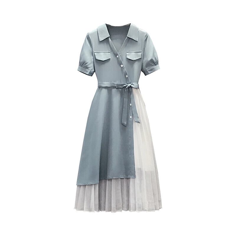 プラスサイズの婦人服脂肪 2024 新しい夏スタイル緩い気質シャツスプライシング痩身腹カバードレス 大きめサイズ サマー 夏物 841S1678147764944