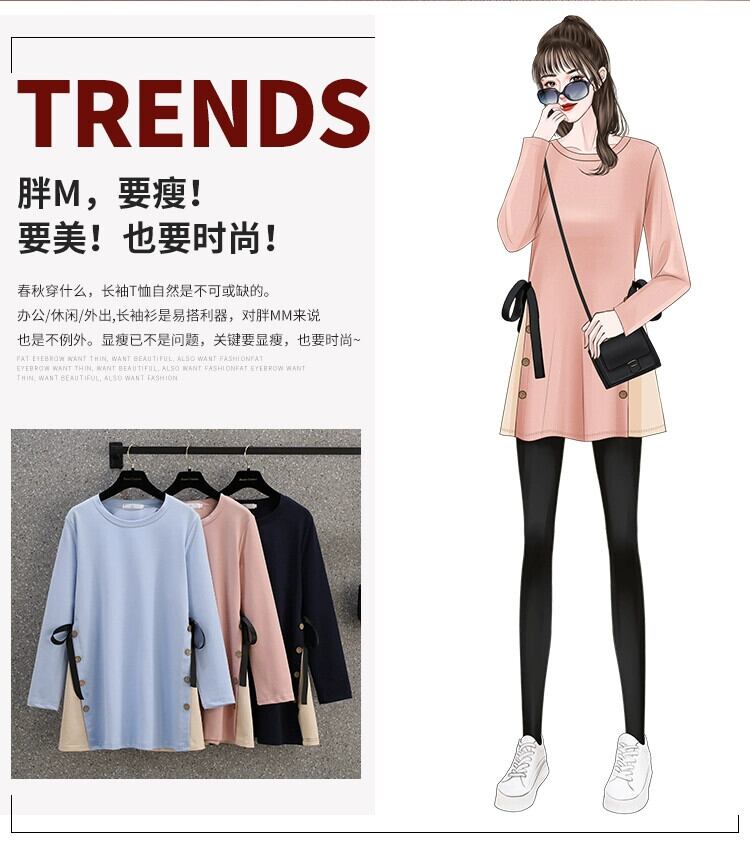 プラスサイズの婦人服ファット mm 春の新スタイル 2024 ファッション多用途カジュアルトップスミッドレングスルーズボトム T シャツ 大きめサイズ スプリング 春物 Tシャツ 841S1689765503119
