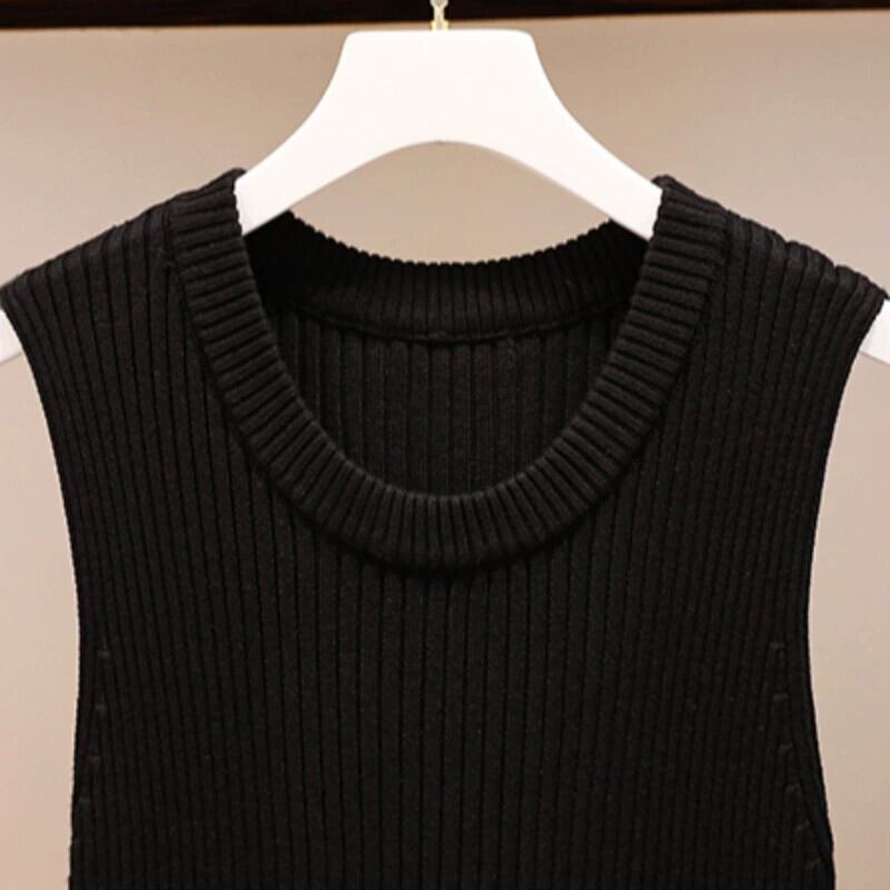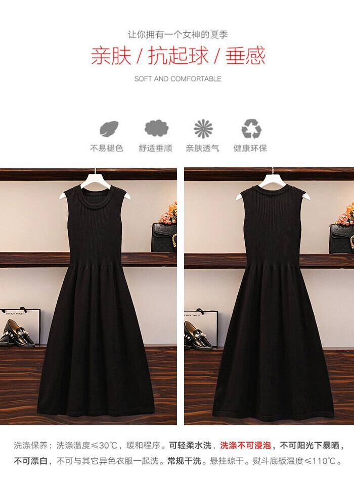 プラスサイズの婦人服 2024 流行の女性の春の新しいスタイルのファットシスタールーズでスリムなニットボトミングベストドレス割引トレンド 大きめサイズ スプリング 春物 841S1637697006500