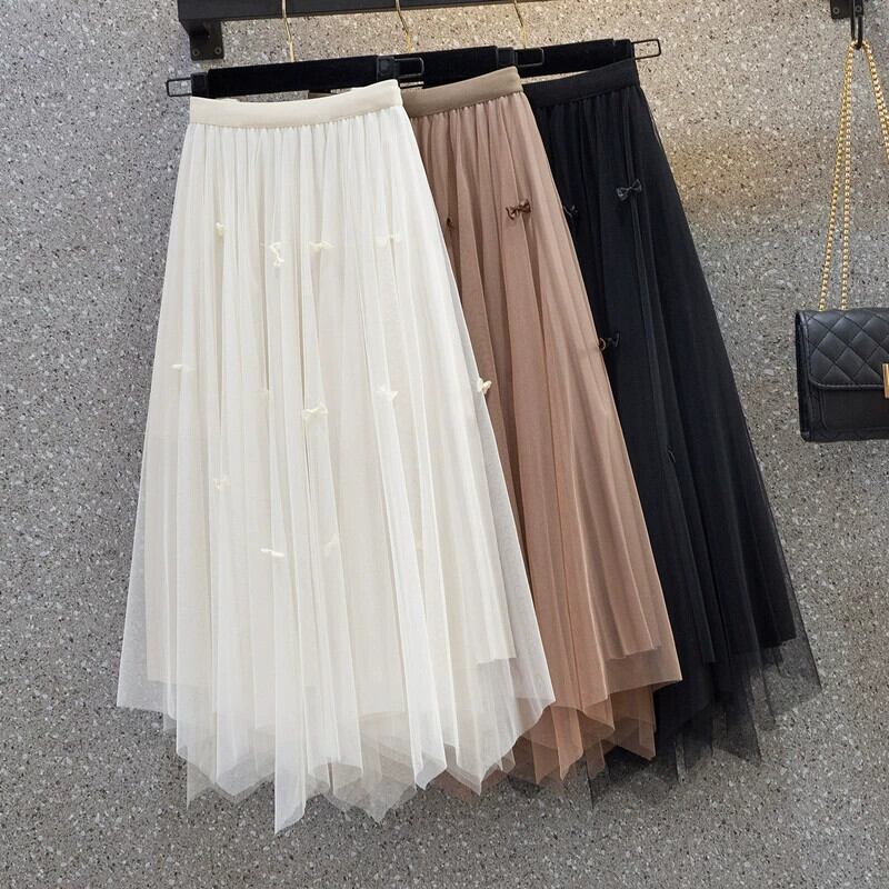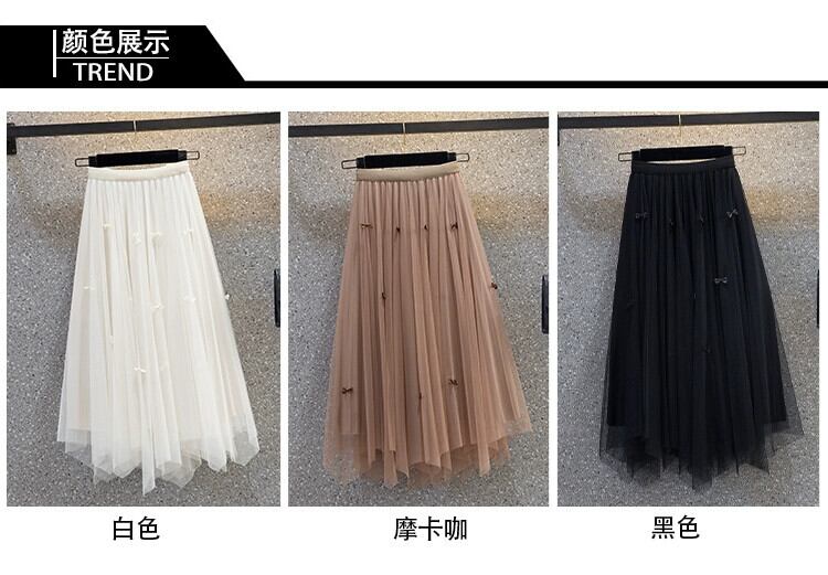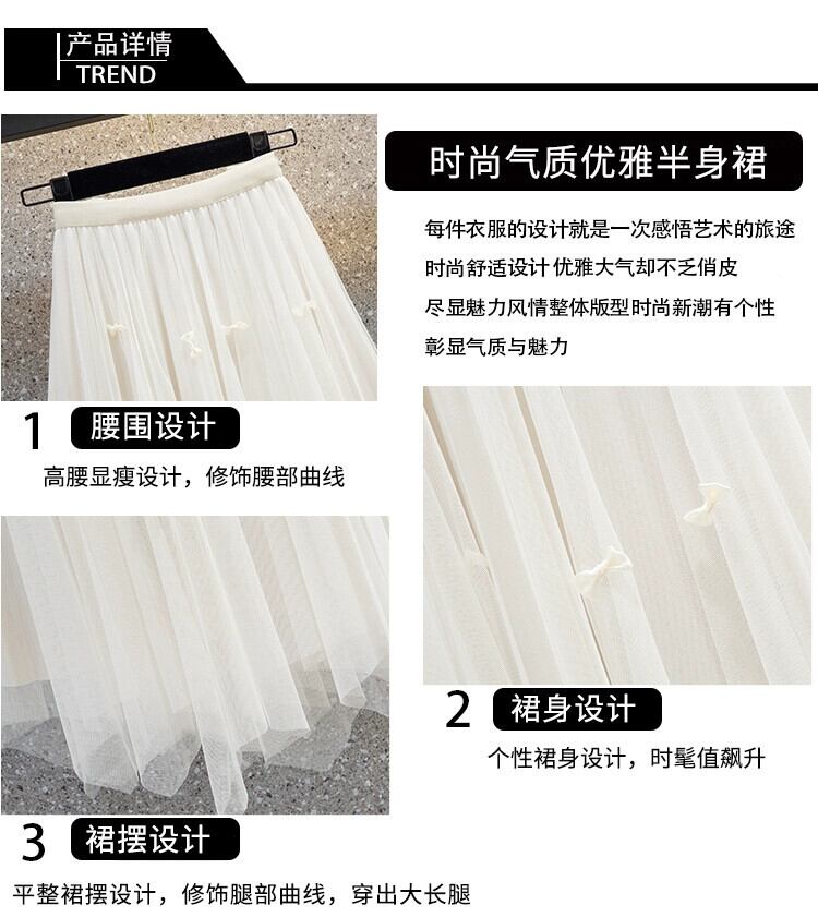 プラスサイズの婦人服 2024 脂肪姉妹春の新デザインの弓リバーシブルプリーツメッシュスカートトレンディな リボン 大きめサイズ スプリング 春物 841S1627891209394