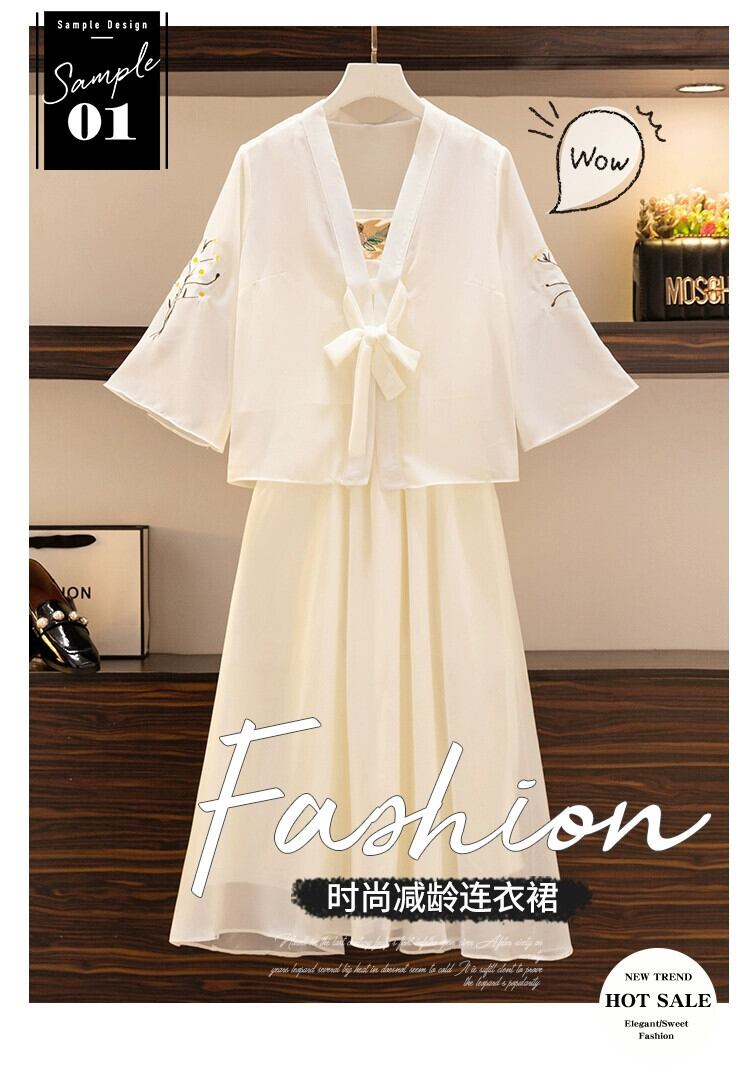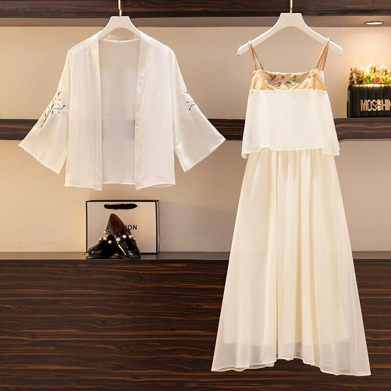 プラスサイズの婦人服 2024 脂肪姉妹夏の新韓服スタイルサスペンダードレスシフォンカーディガントップ 2 点セット 大きめサイズ サマー 夏物 841S1694685346145