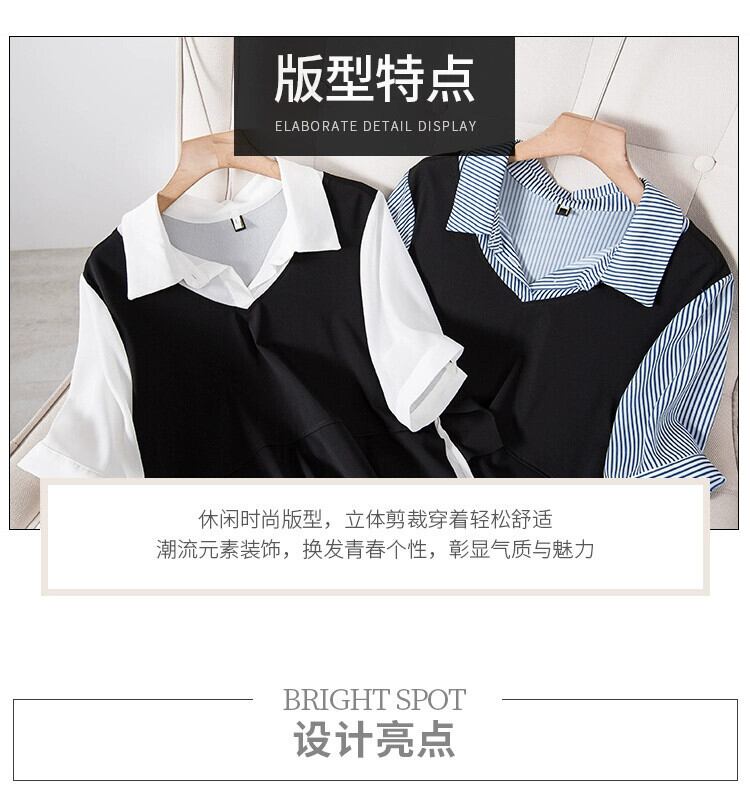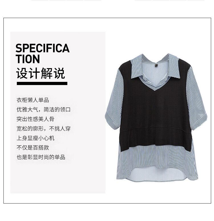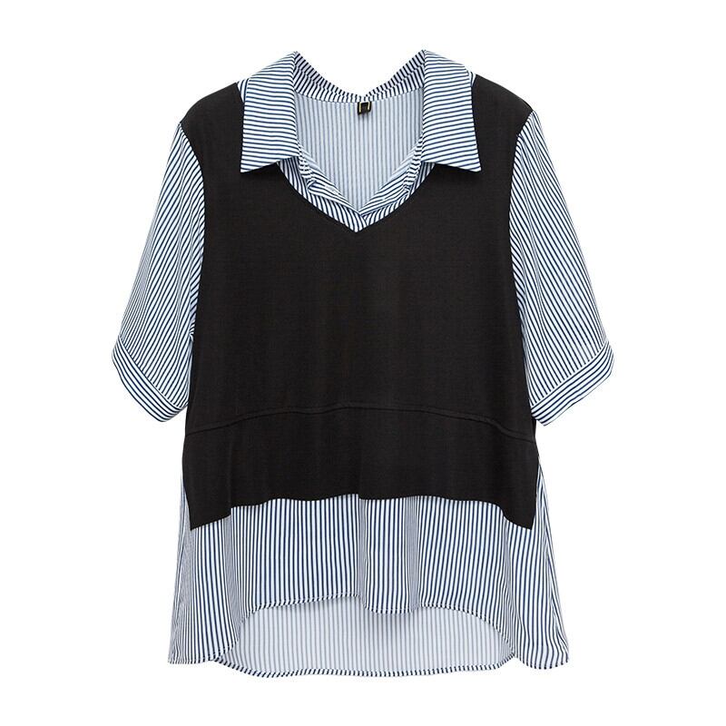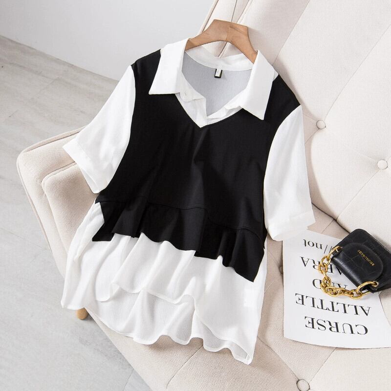 プラスサイズの女性の 2024 ファットシスター夏無地多用途西洋スタイルシャツ偽ツーピーストップス 大きめサイズ サマー 夏物 ソリッドカラー 841S1660065561973