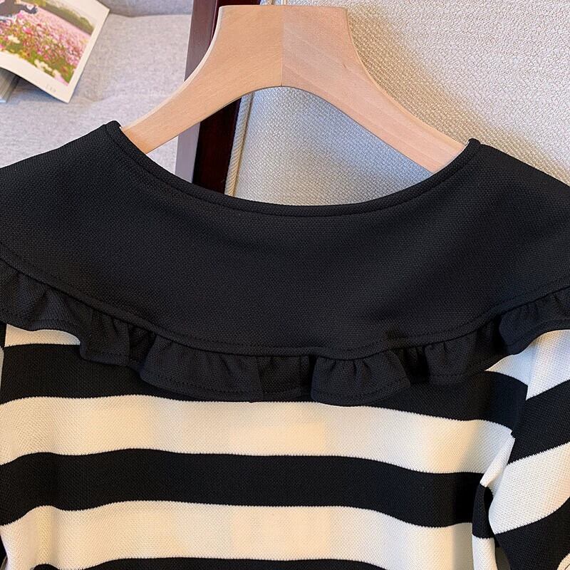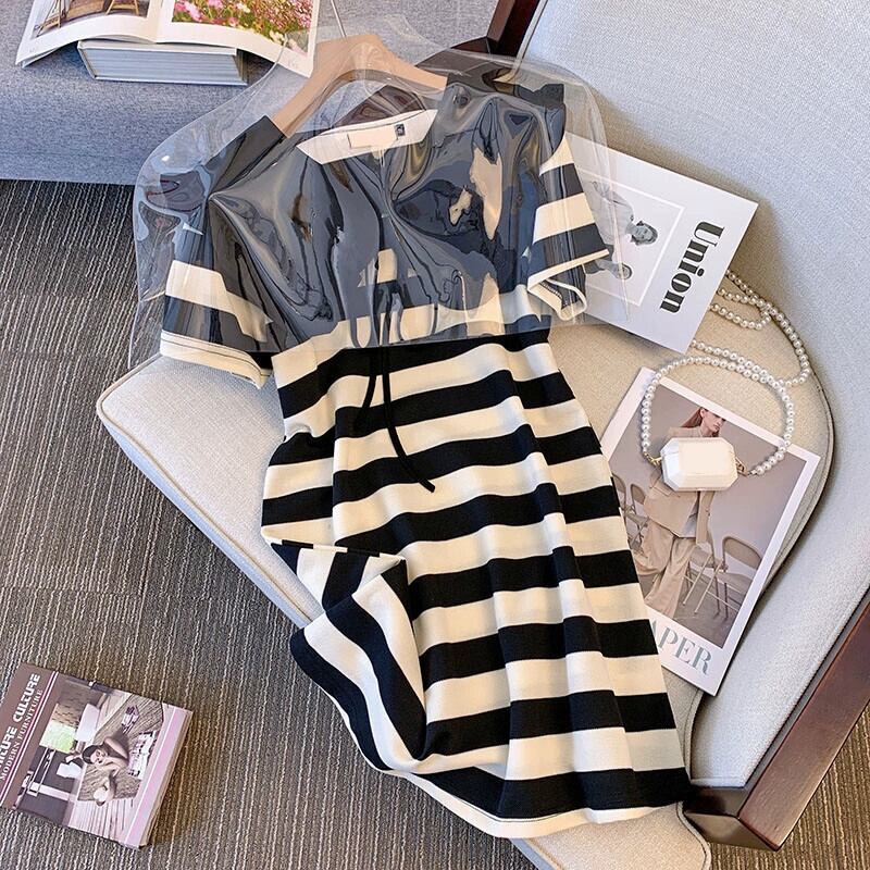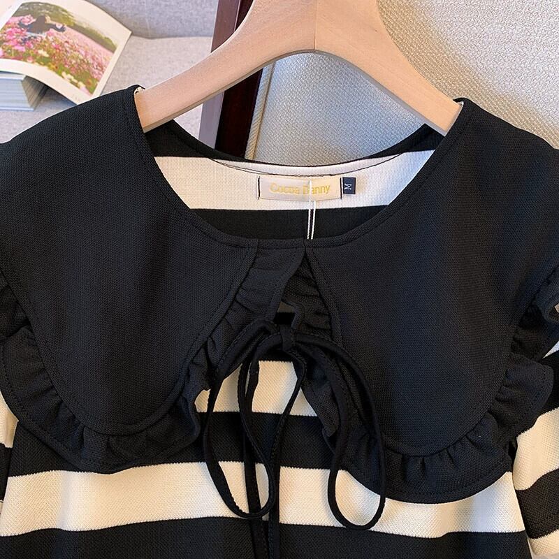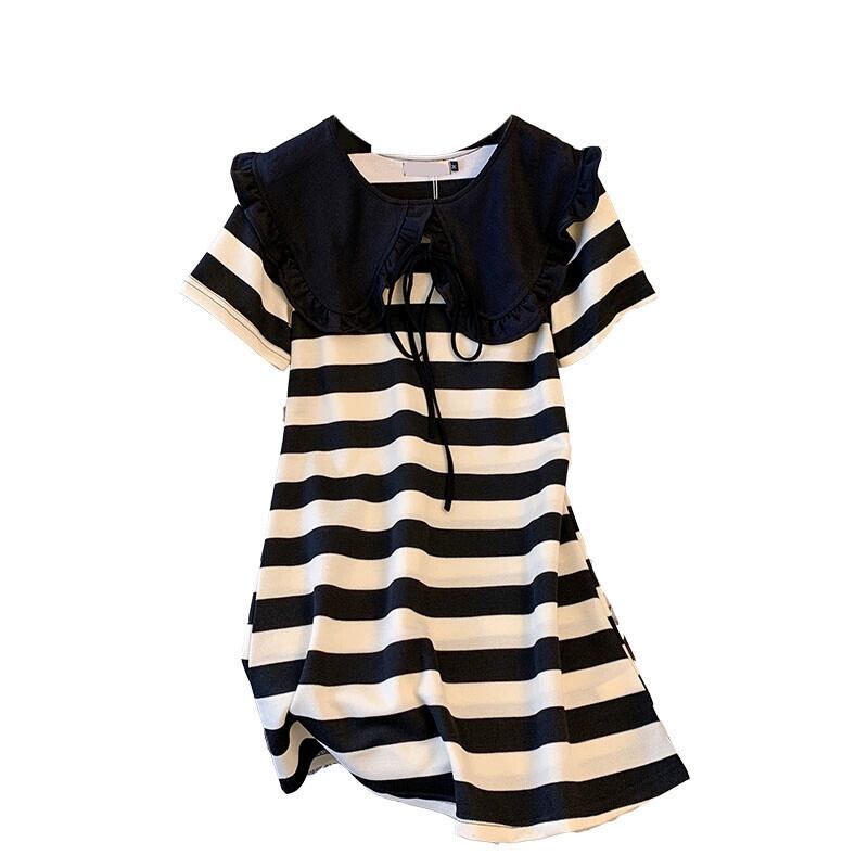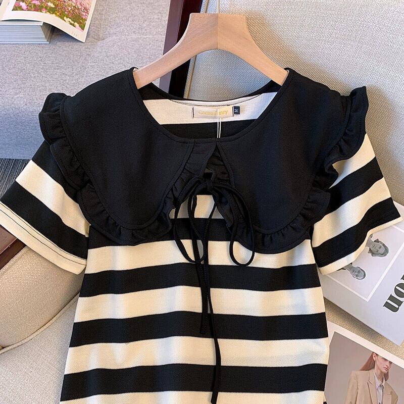 プラスサイズの女性の夏の脂肪ファッショナブルなストライプの人形の襟オールマッチスリムドレス気質カジュアル年齢軽減スカート 大きめサイズ サマー 夏物 841S169548463206