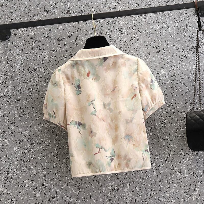 2024 夏の新しいプラスサイズの女性のフレンチレトロ人形襟花柄多用途チャイナシャツトレンド 大きめサイズ サマー 夏物 841S1658061178392