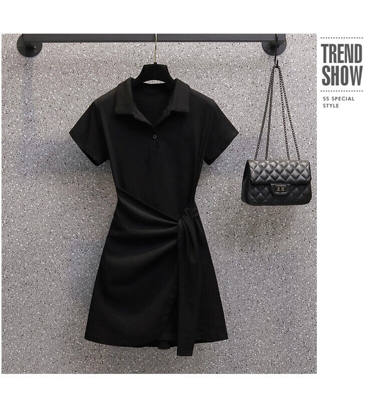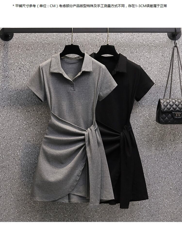 プラスサイズの婦人服 2024 脂肪姉妹夏の新ファッションファッションウエスト痩身カバー腹不規則な半袖ドレス 大きめサイズ サマー 夏物 841S1640370909226