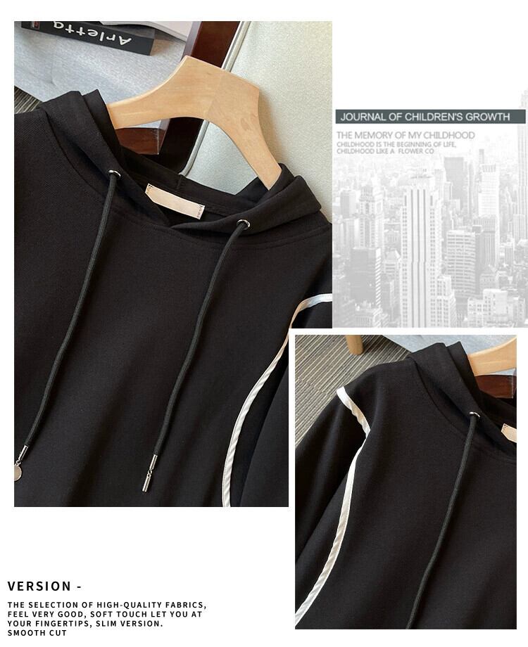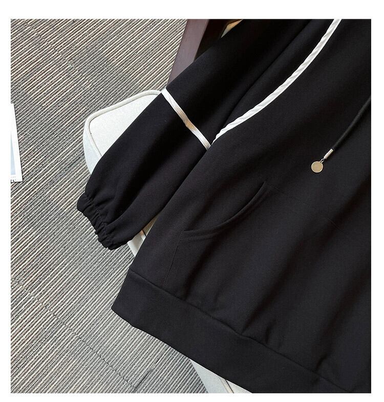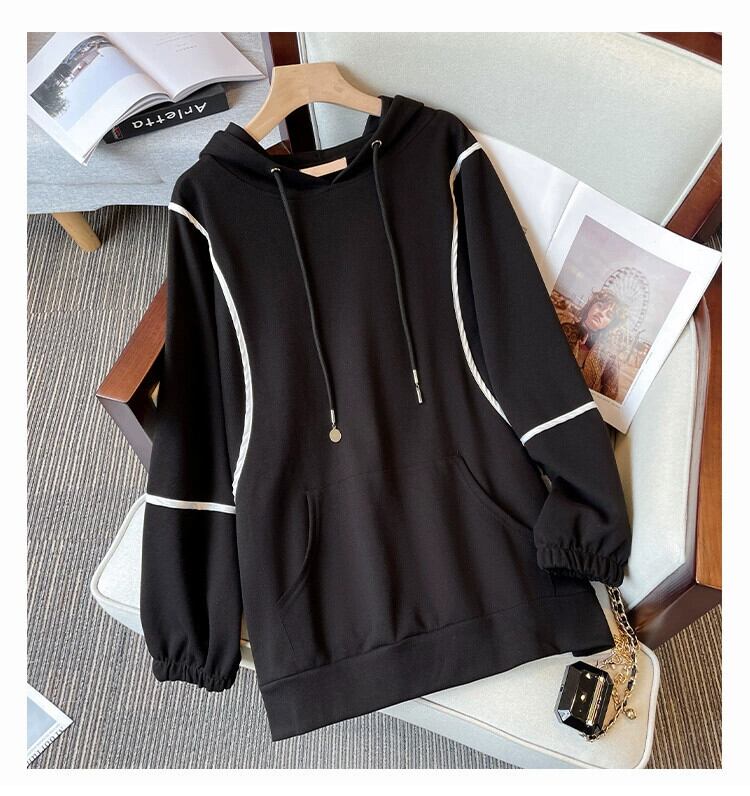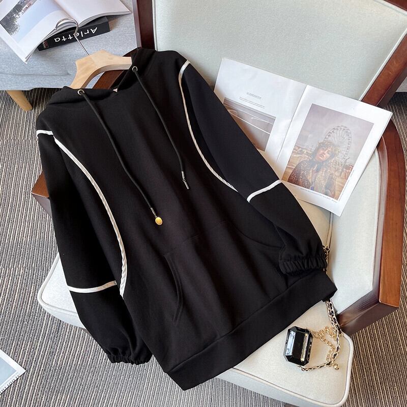プラスサイズの婦人服 2024 脂肪姉妹春の新スタイルカバー肉ファッションデザイン対照的な色のフード付き巾着気質トレーナー 大きめサイズ スプリング 春物 841S1693038883832