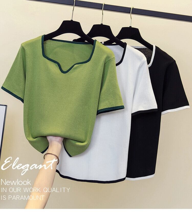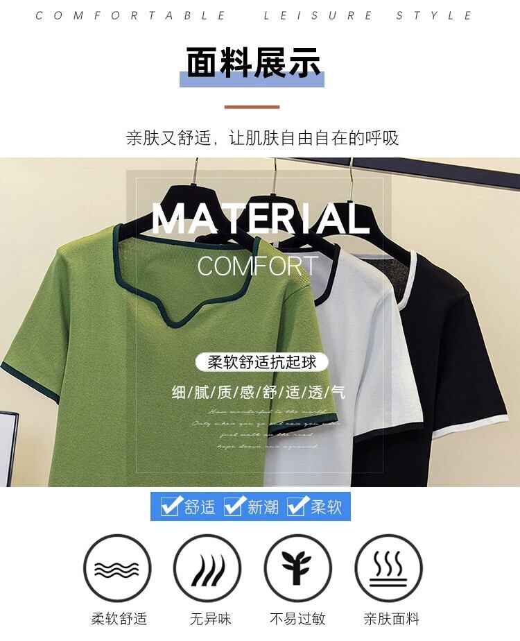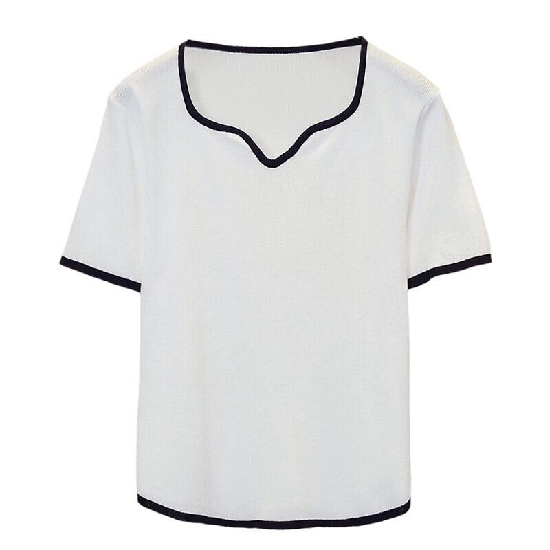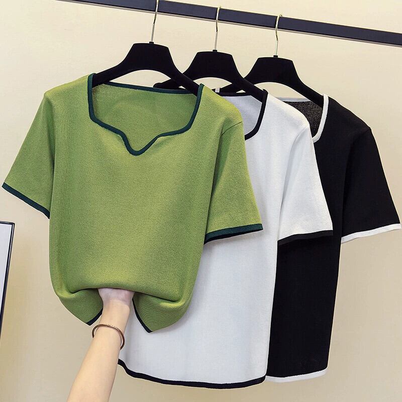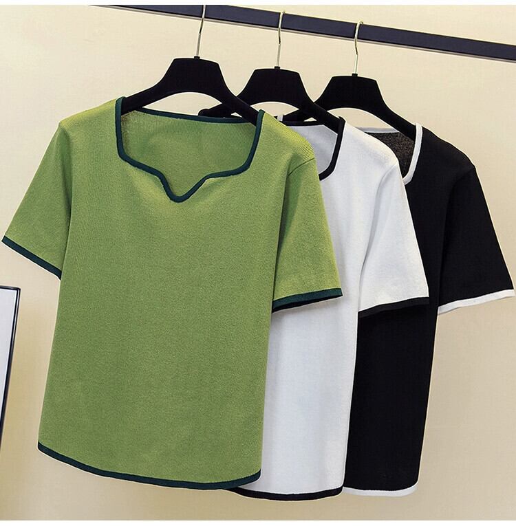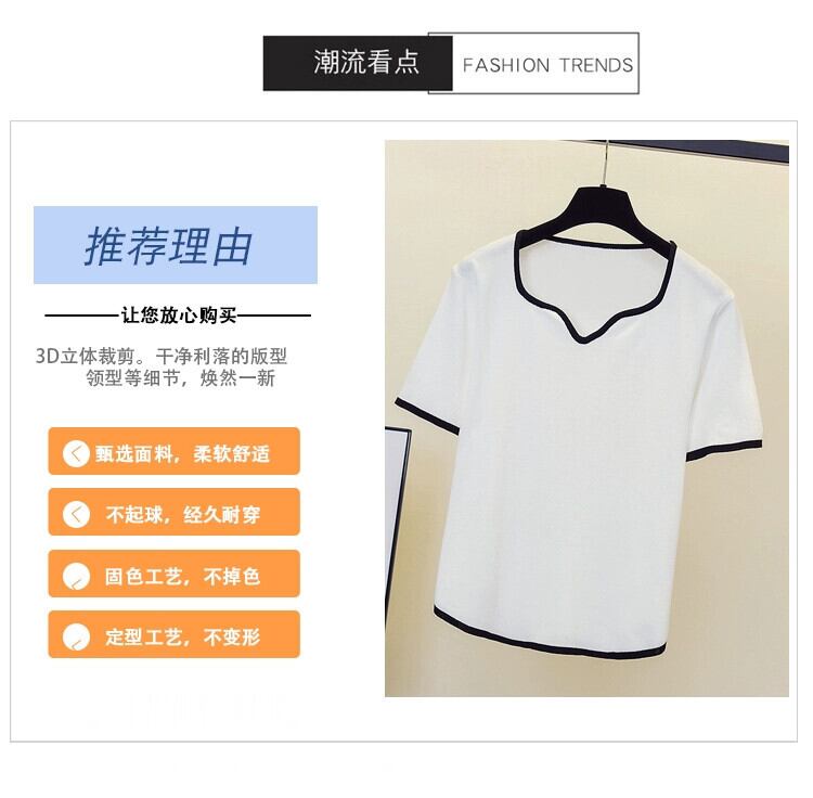 プラスサイズの婦人服 2024 流行の女性の夏の新しいファットシスタールーズニット半袖 V ネックファッショナブルなデザイン多用途 T シャツ 大きめサイズ サマー 夏物 Vネック Tシャツ 841S1687840250764