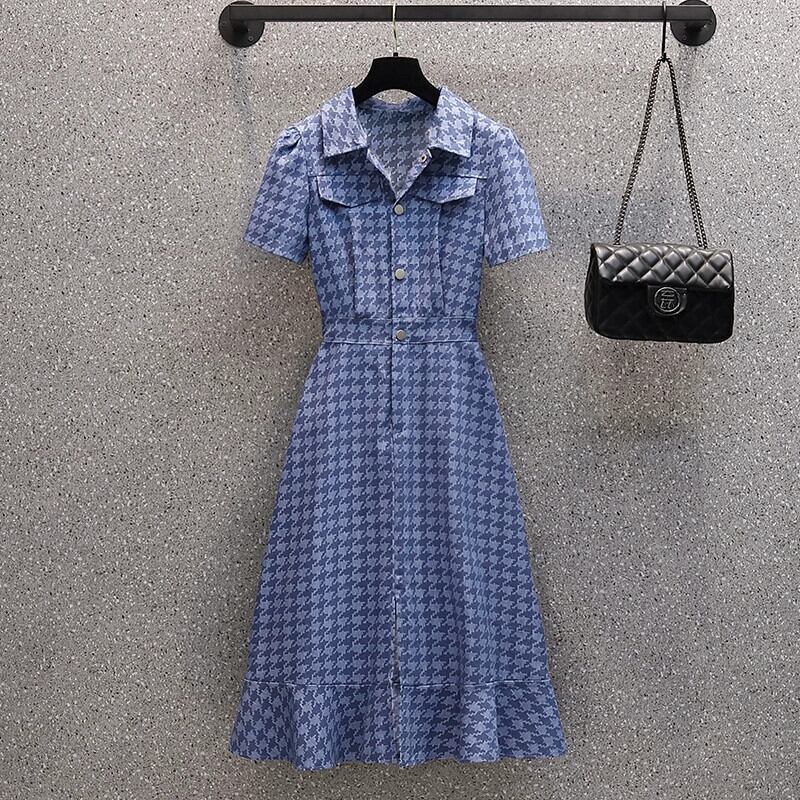 プラスサイズの女性の 2024 夏の新しいスタイル脂肪ファッション気質腹カバーカジュアルウエストステッチデニムドレス 大きめサイズ サマー 夏物 841S1617333419549