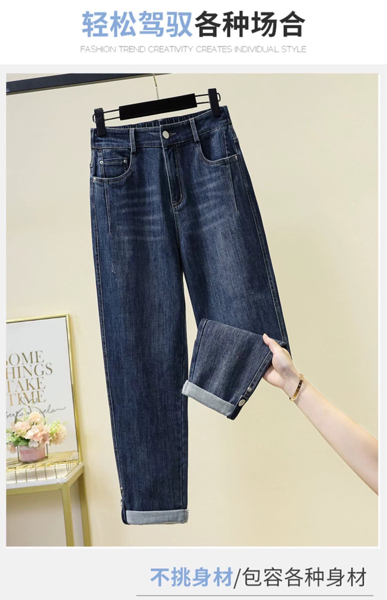 適切なワイドヒップ、汎用性の高い大きいサイズの春の婦人服、2024新しいパンツ、ファッショナブルなデザイン、スリムジーンズのトレンド 大きめサイズ スプリング 春物 841S1667118567255