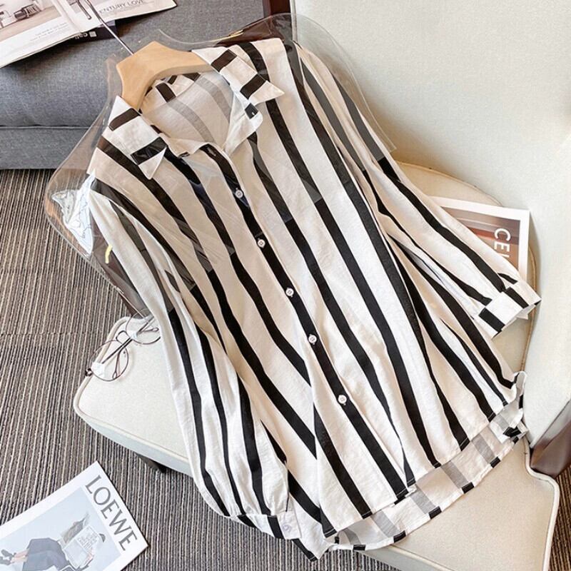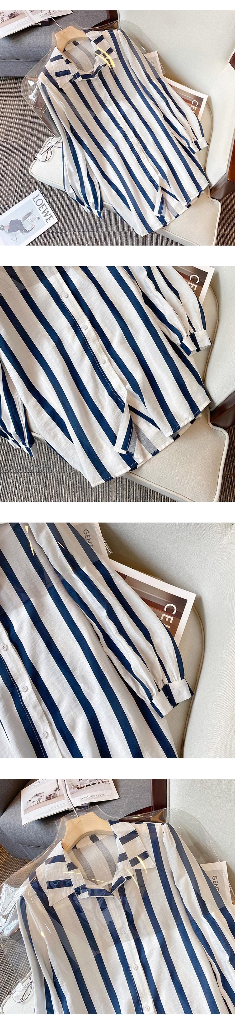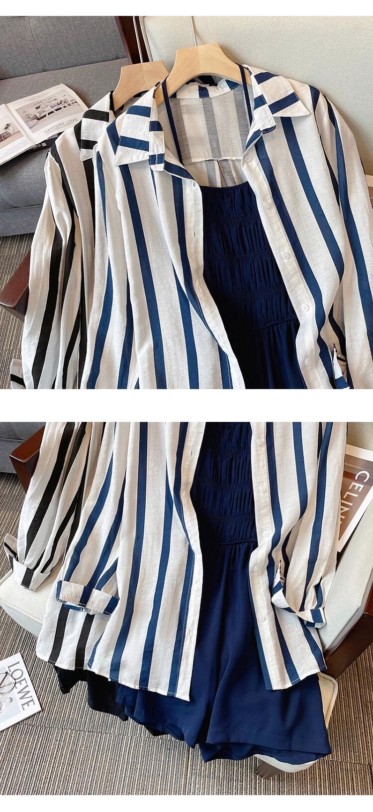プラスサイズの婦人服 2024 流行の女性の春の新スタイル脂肪姉妹ファッションスリム気質ストリップシャツオーバーオール 2 点セット 大きめサイズ スプリング 春物 841S1667633975985