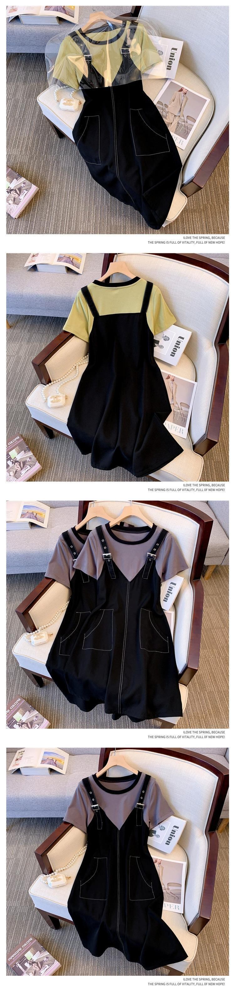 プラスサイズの女性の脂肪 mm 夏の新スタイル 2024 フランスの気質スプライシング偽ツーピースデザインドレスファッションスカート 大きめサイズ サマー 夏物 841S1626518643257