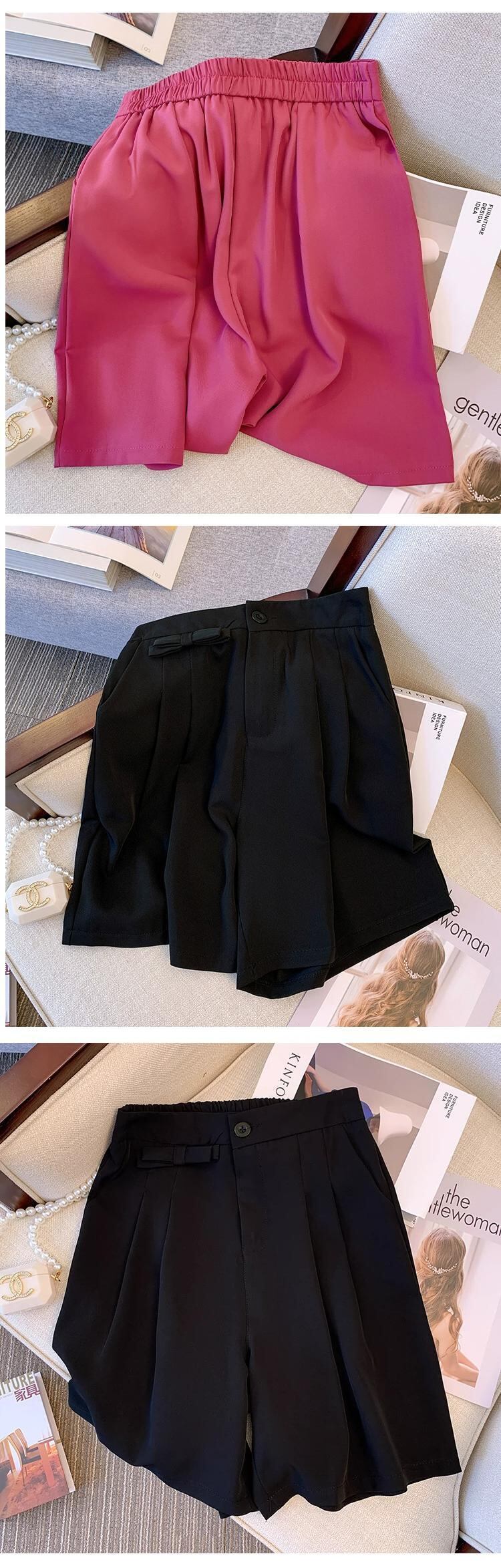 プラスサイズの女性の 2024 夏服ファットシスタールーズワイドレッグスリムパンツウエスト弾性ウエストスーツショート エラスティック 伸縮 大きめサイズ サマー 夏物 ワイドパンツ 841S1694030584139