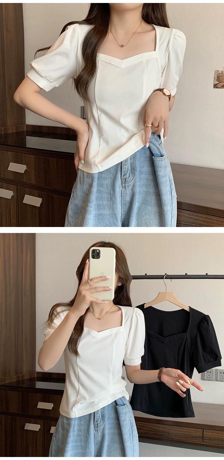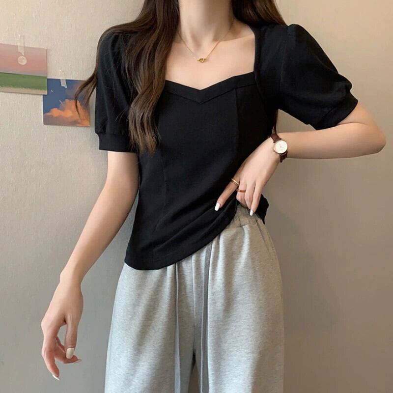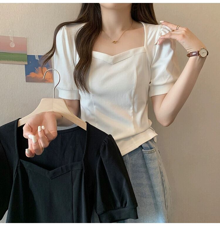 プラスサイズの女性の脂肪 mm 夏の新スタイル 2024 eign ファッションパフスリーブ半袖トップス多目的腹カバースクエアネック Tシャツ 大きめサイズ サマー 夏物 スクウェア 841S161086279730