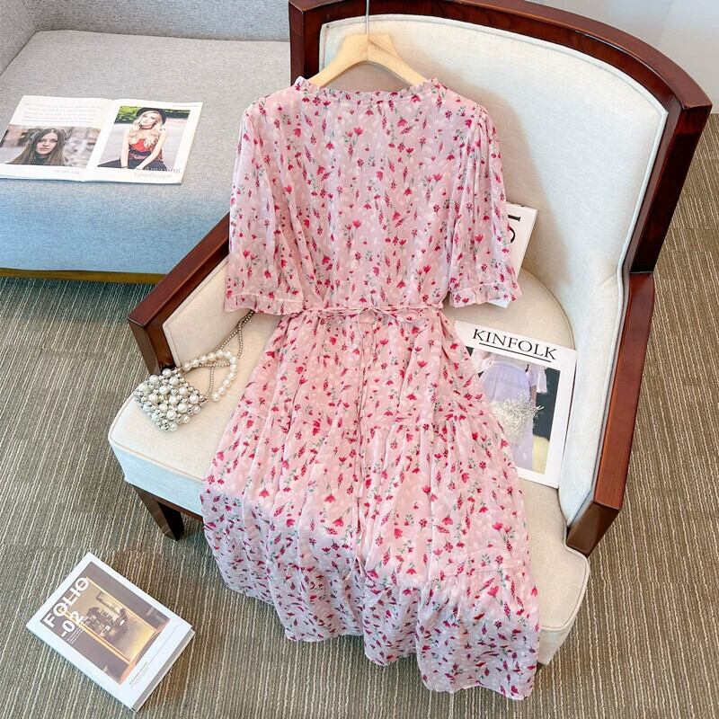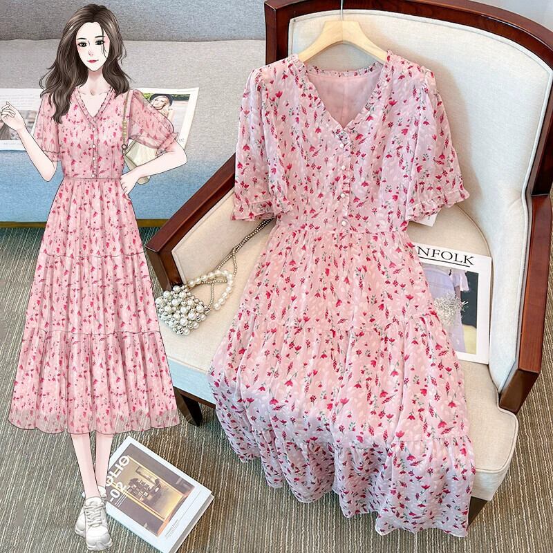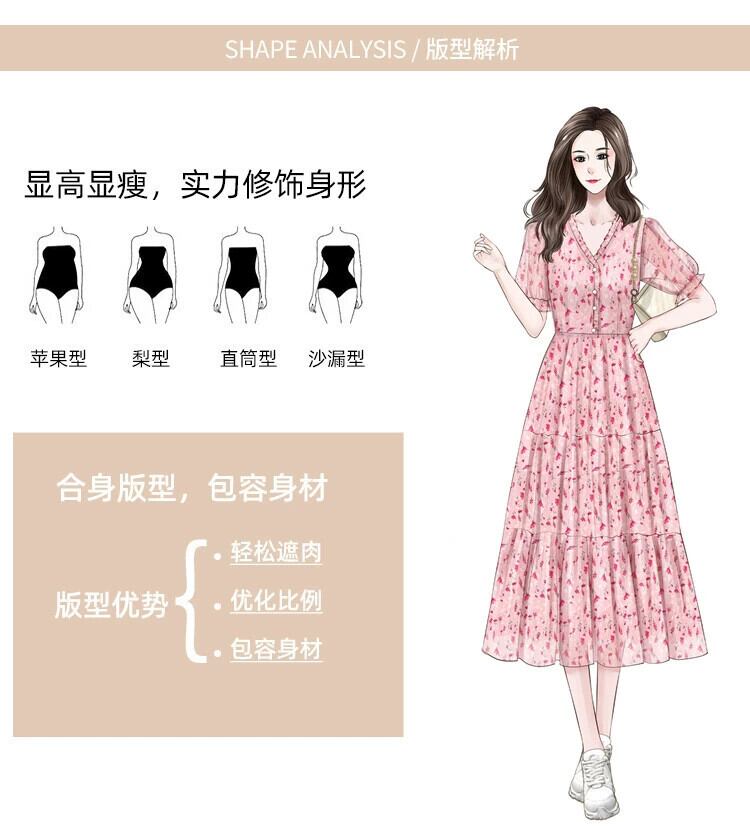 プラスサイズの婦人服 2024 脂肪姉妹夏服新しい甘い気質痩身腹カバーロングスカート年齢軽減花柄ドレス 大きめサイズ 大人ガーリー スウィート キュート カジュアル サマー 夏物 841S1658216535309