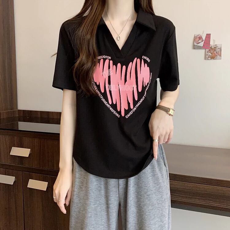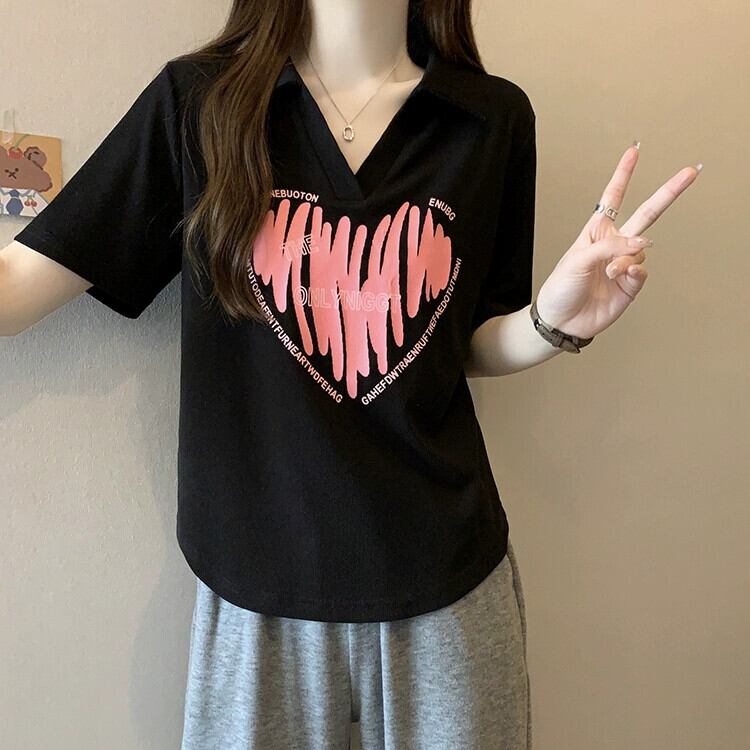 プラスサイズの婦人服 2024 トレンディな夏の新しいスタイルの脂肪姉妹ファッション多目的肉カバートップス痩身愛プリント T シャツ 大きめサイズ サマー 夏物 Tシャツ 841S1666418929225