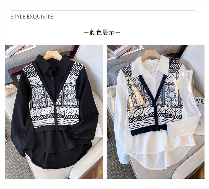 プラスサイズの婦人服 2024 脂肪姉妹春の新ファッションステッチニットベスト偽ツーピースシャツトップス女性 大きめサイズ スプリング 春物 841S1656468221307