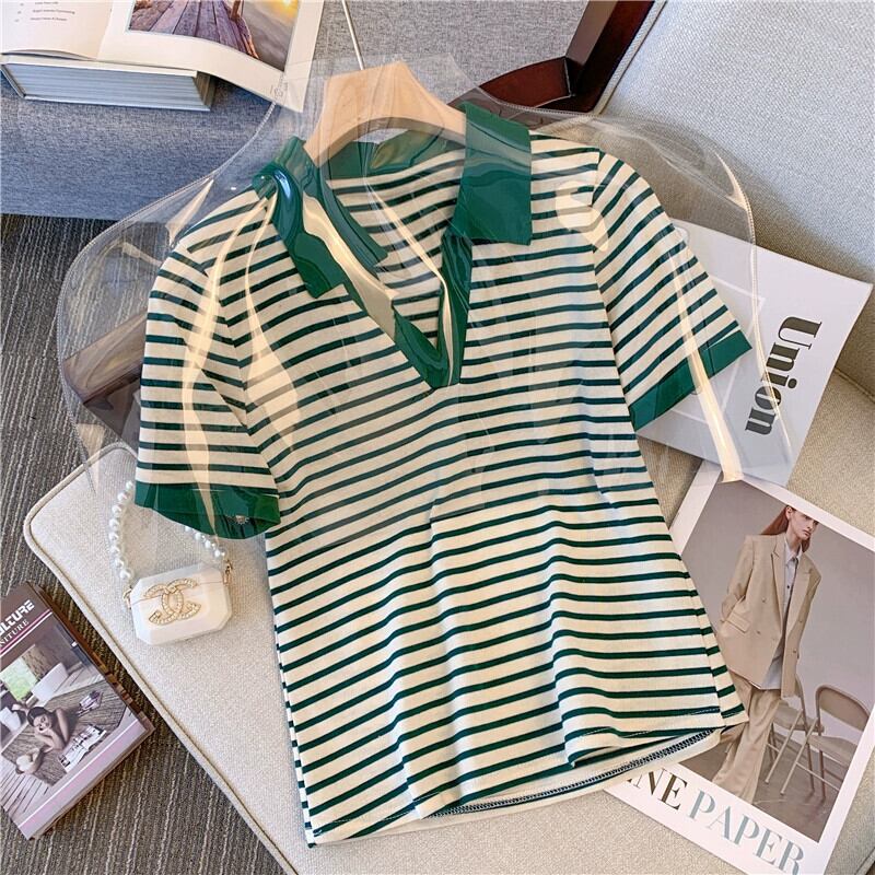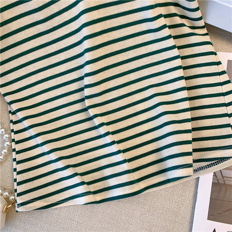 プラスサイズの女性の 2024 脂肪姉妹夏服新しいファッションストライプ半袖 T シャツ不規則なパンツとスカート 2 点セット 大きめサイズ サマー 夏物 Tシャツ 841S165210327800