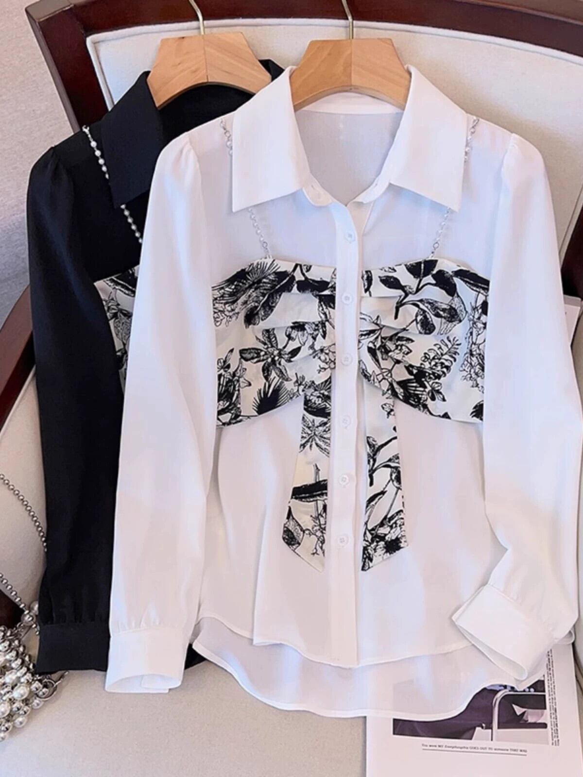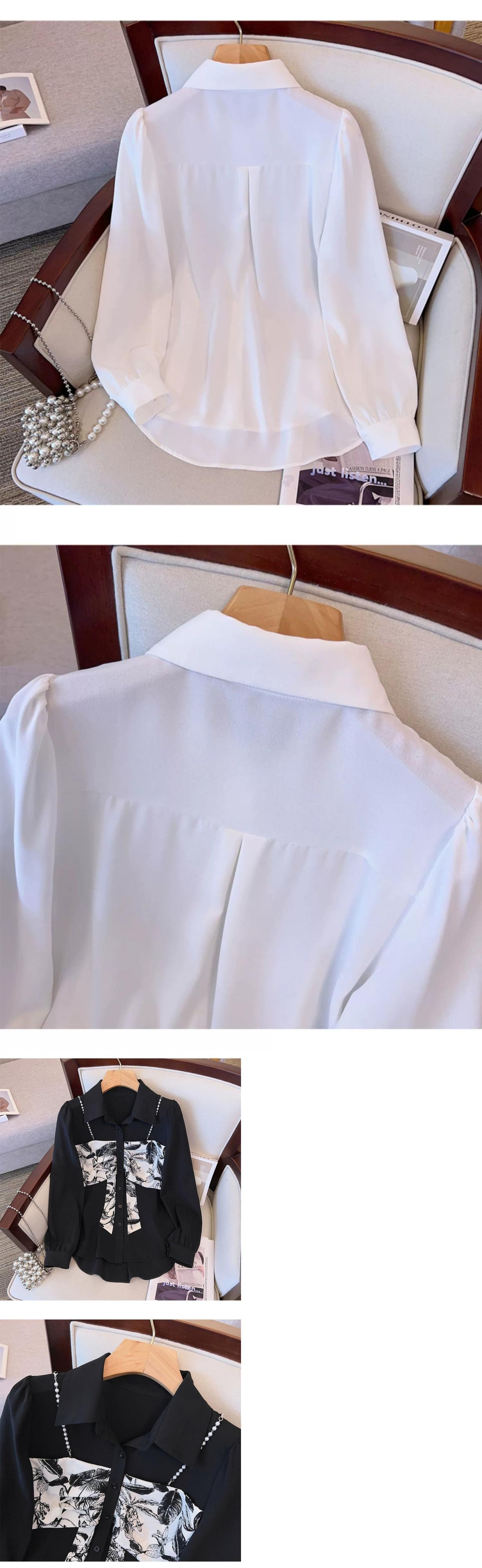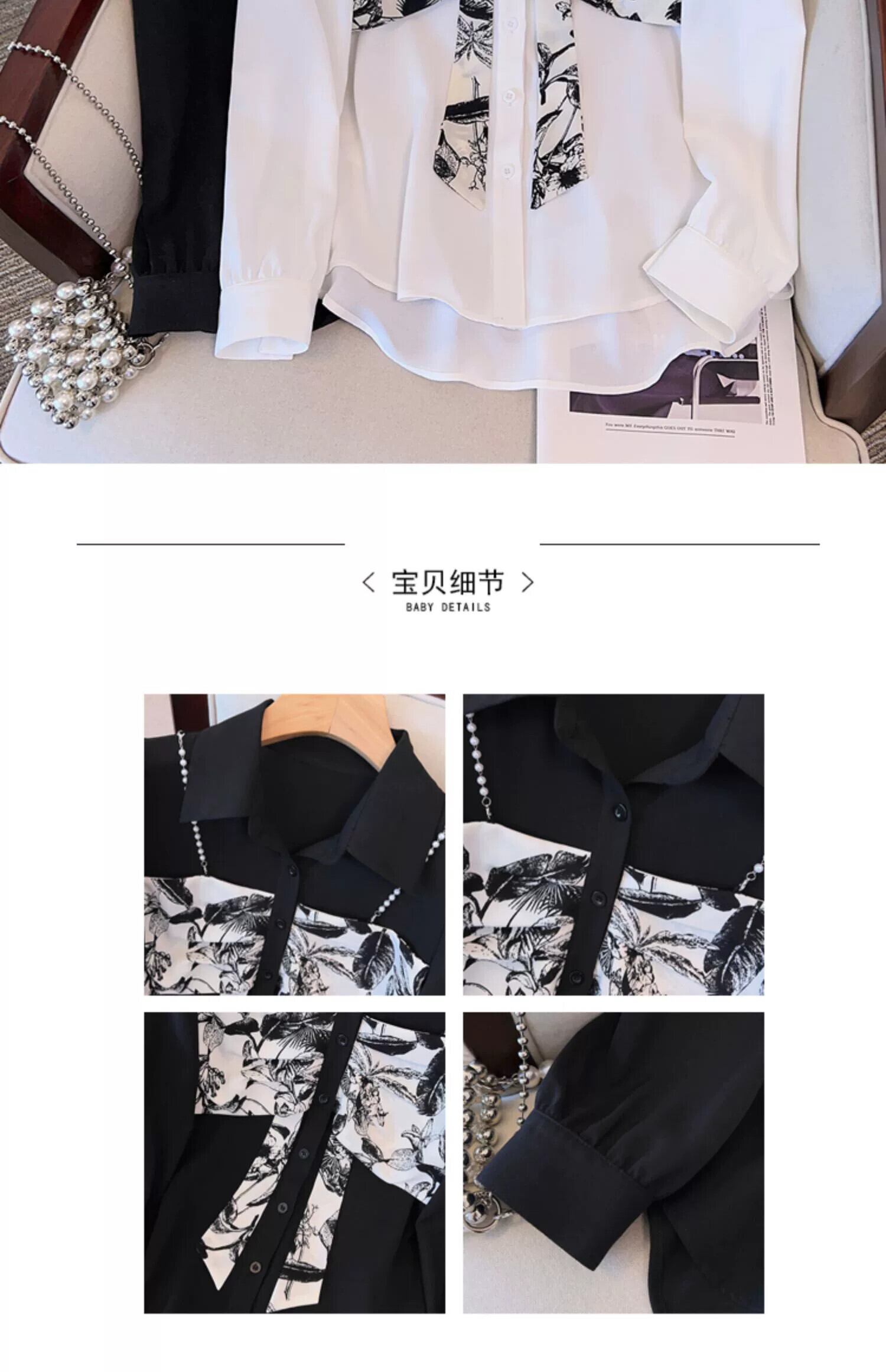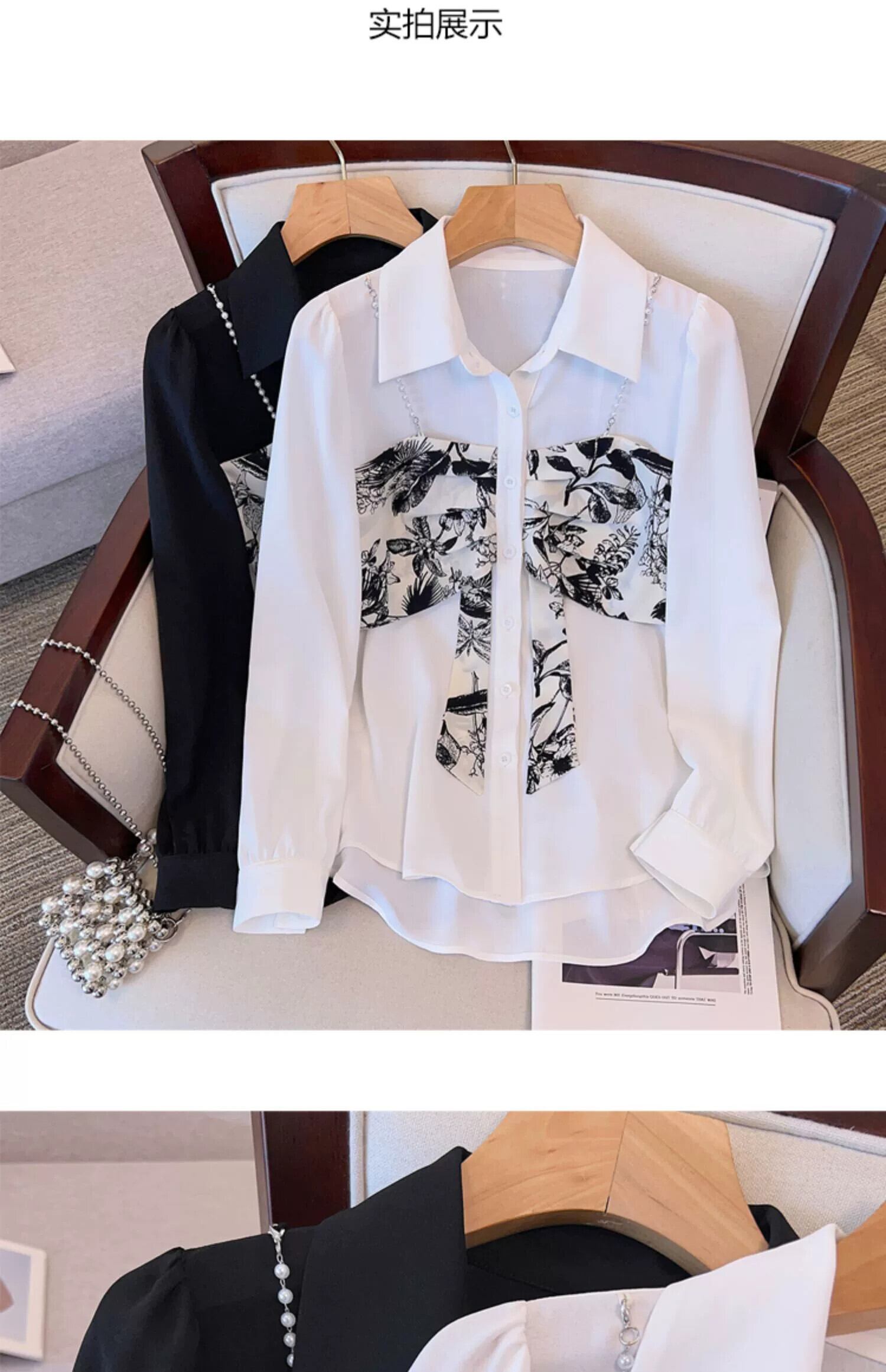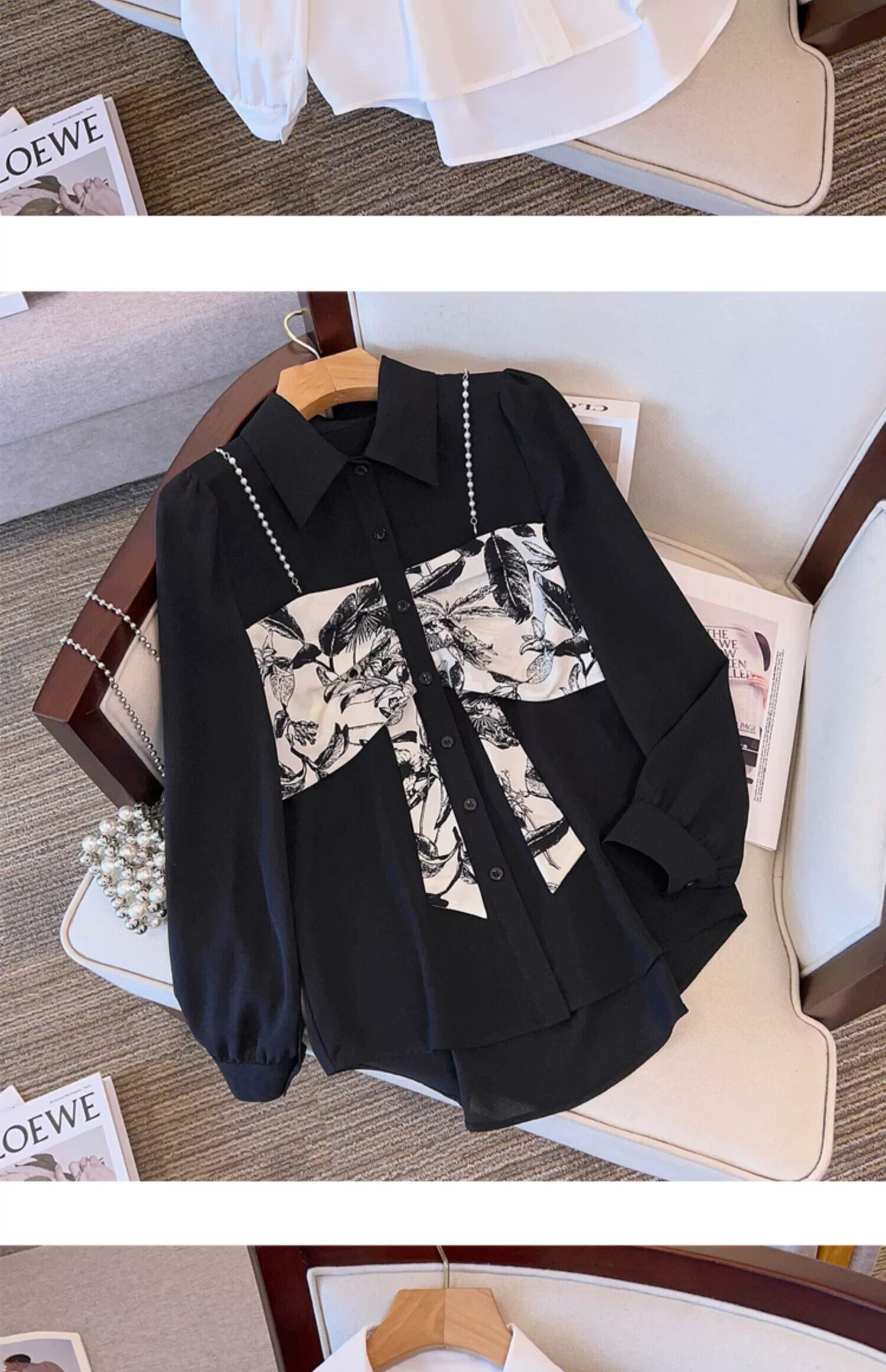 プラスサイズの女性の 2024 春の新ファット mm ハイエンドデザイン長袖フェイクツーピースパールストラップ気質シャツ ロング 大きめサイズ スプリング 春物 真珠 841S1675550598539