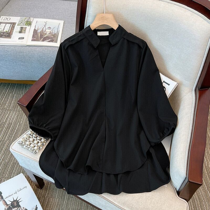 プラスサイズの婦人服ファット mm 夏の新スタイル 2024 ルーズな肉をカバーする気質とスリムなハーフオープン カラー シャツ トレンディなポロカラー トップス 大きめサイズ サマー 夏物 841S1694528714804
