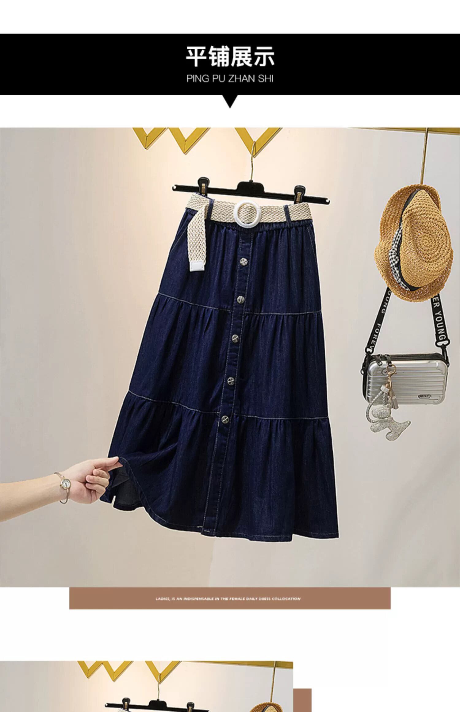 プラスサイズの婦人服 2024 ファットシスター春の新スタイルファッショナブルなシングルブレストデニムスカート多用途ロングスカートトレンド 大きめサイズ スプリング 春物 841S1617442215813