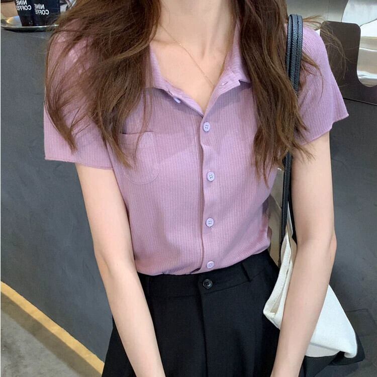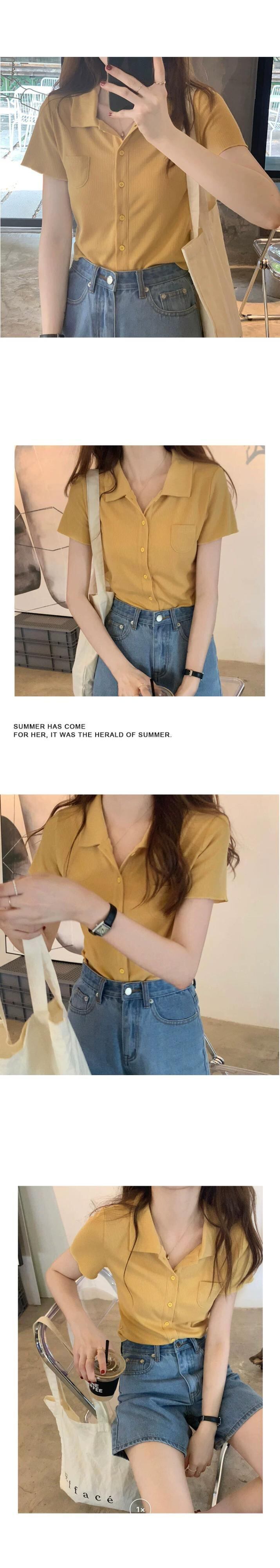 プラスサイズの婦人服 2024 脂肪姉妹夏の新しいファッションスリムラペルショート薄いニット半袖 Tシャツトップ 大きめサイズ サマー 夏物 841S1631928155280