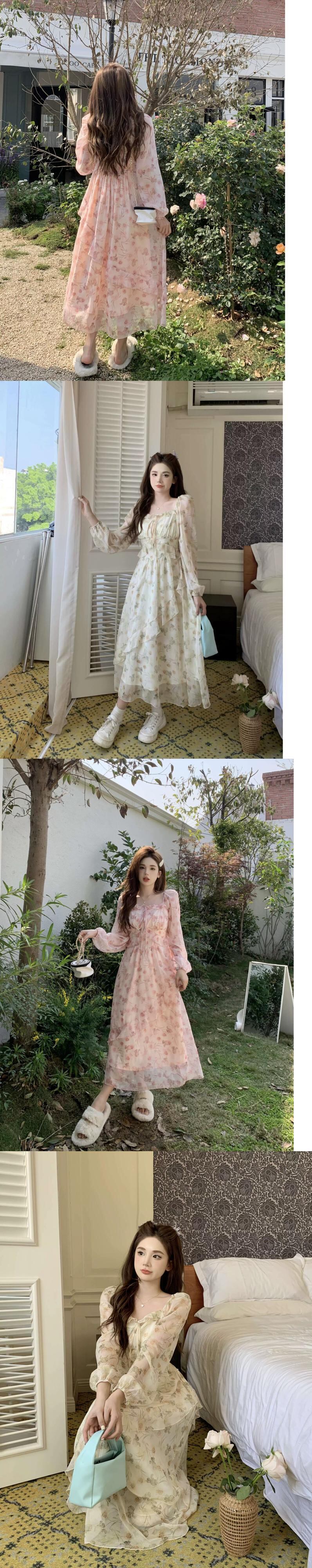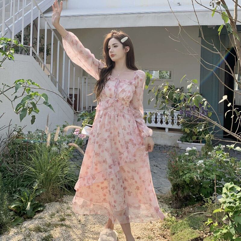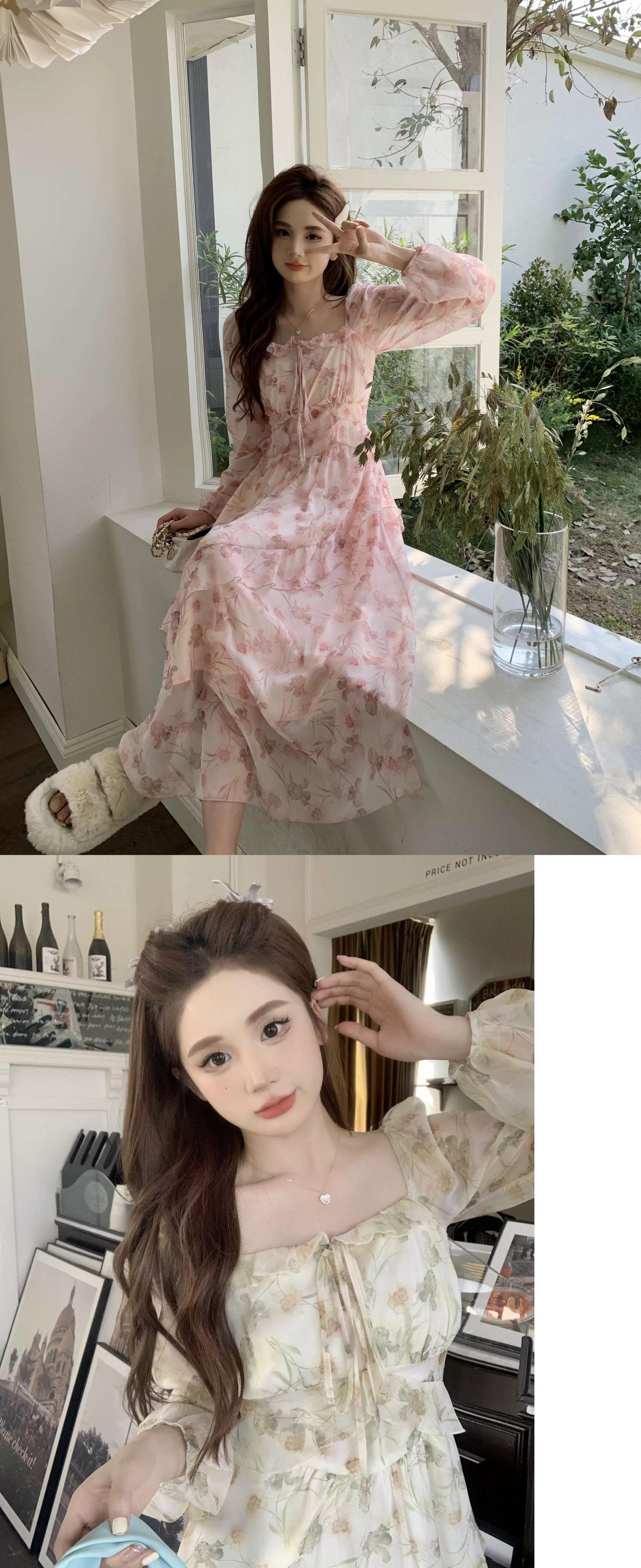 プラスサイズの女性の 2024 春の新しいスタイルのフレンチウエスト痩身シフォン不規則な花柄ドレス脂肪 大きめサイズ スプリング 春物 841S1651941249400