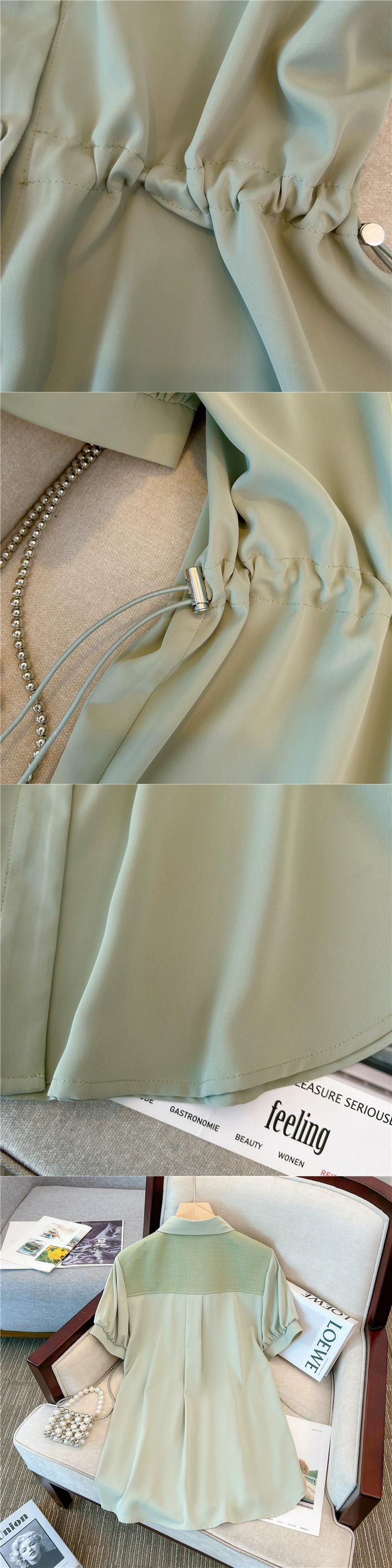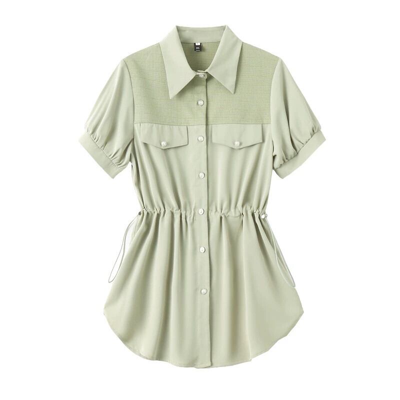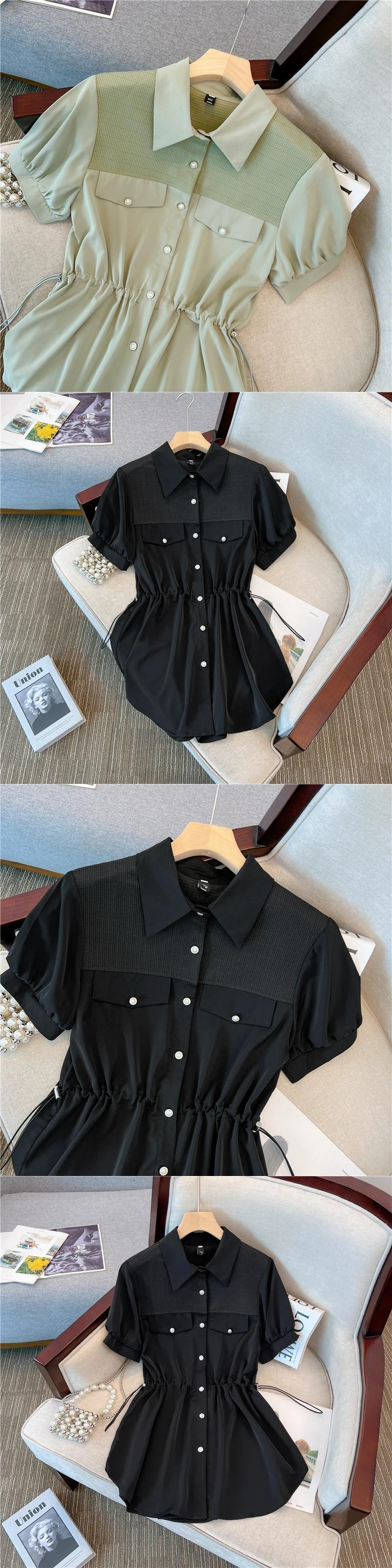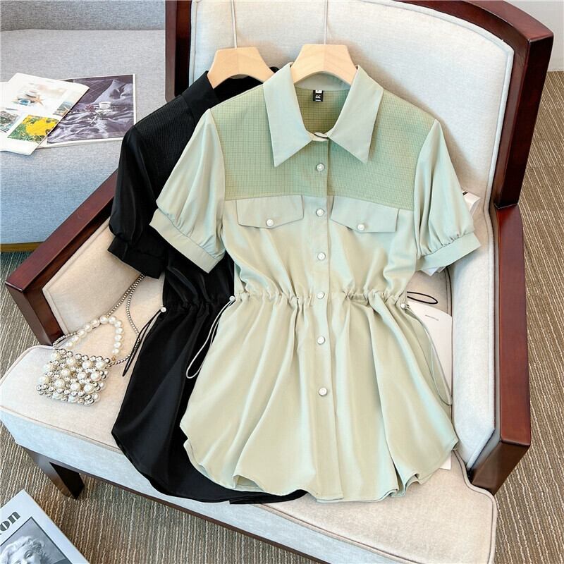 プラスサイズの婦人服 2024 流行の女性の夏の新しいファットシスターカジュアルラペルボタン付き調節可能なウエストミッドレングスシャツ女性 大きめサイズ サマー 夏物 アジャスタブル 841S165603947616