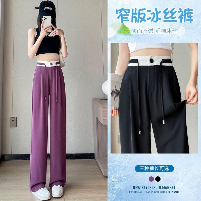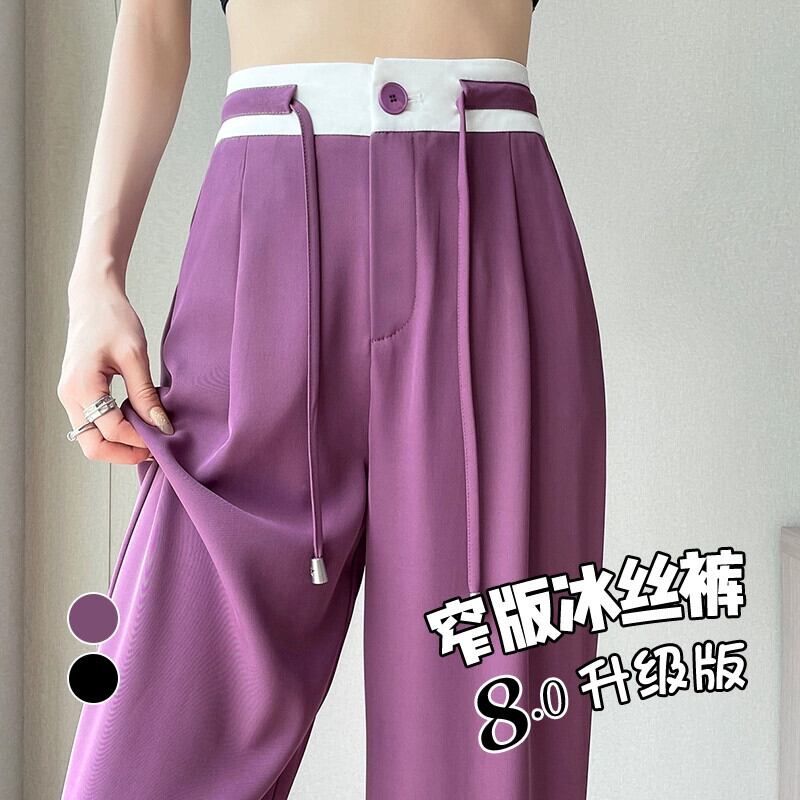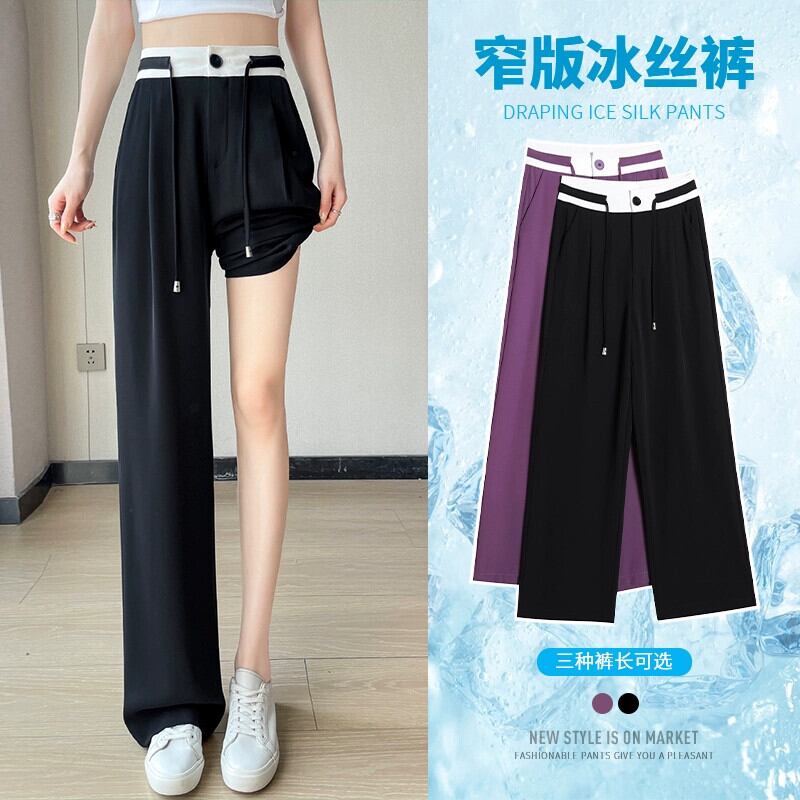 プラスサイズの女性の脂肪夏 Bingsi スーツパンツワイドレッグパンツ薄い床の長さのパンツスリミングパンツ脂肪 mm アイスシルクパンツ 大きめサイズ 841S1615226951543