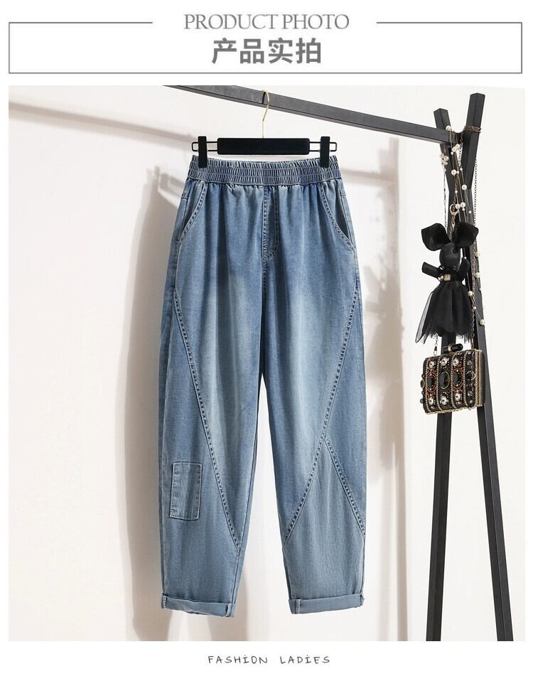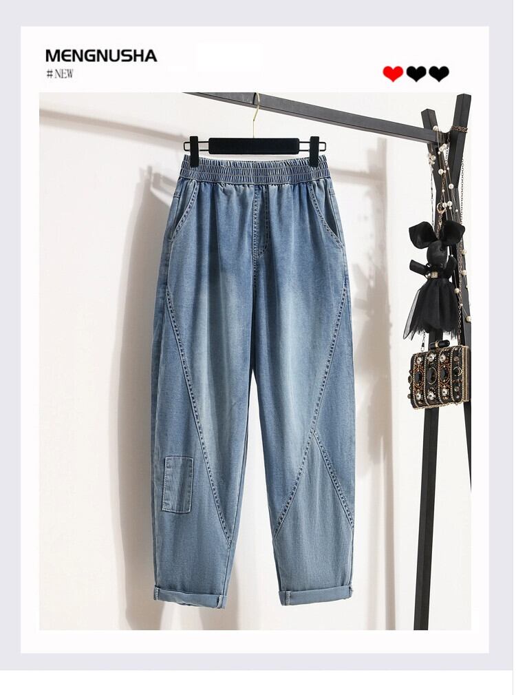プラスサイズの婦人服ファット mm 夏の新スタイル 2024 ルーズ痩身パッチワーク 9 点パンツ多用途ウエスタンスタイルのダッドジーンズ 大きめサイズ サマー 夏物 841S1610823890002