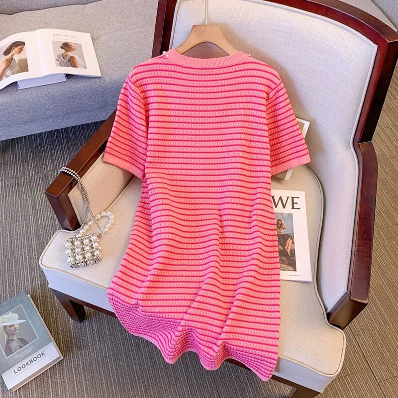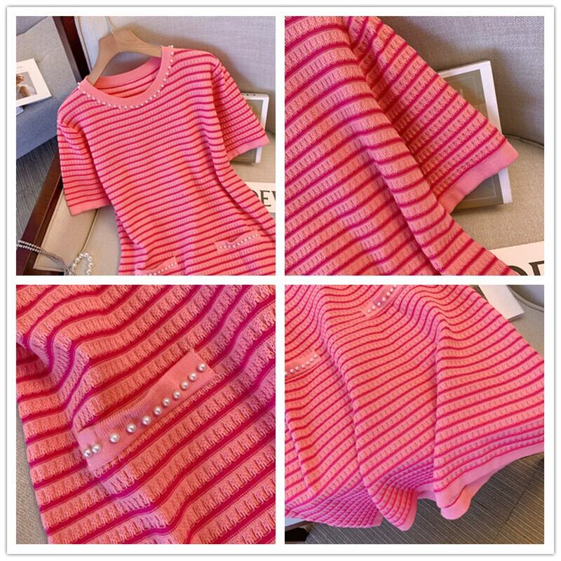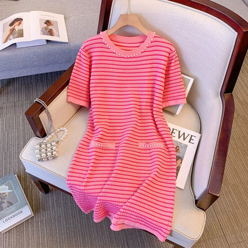 プラスサイズの女性の 2024 夏のドレス太った、気質、重いビーズ、痩身と年齢を減らすドレス、甘くてスパイシーなロングスカート 大きめサイズ 大人ガーリー スウィート キュート カジュアル サマー 夏物 841S1611512814644