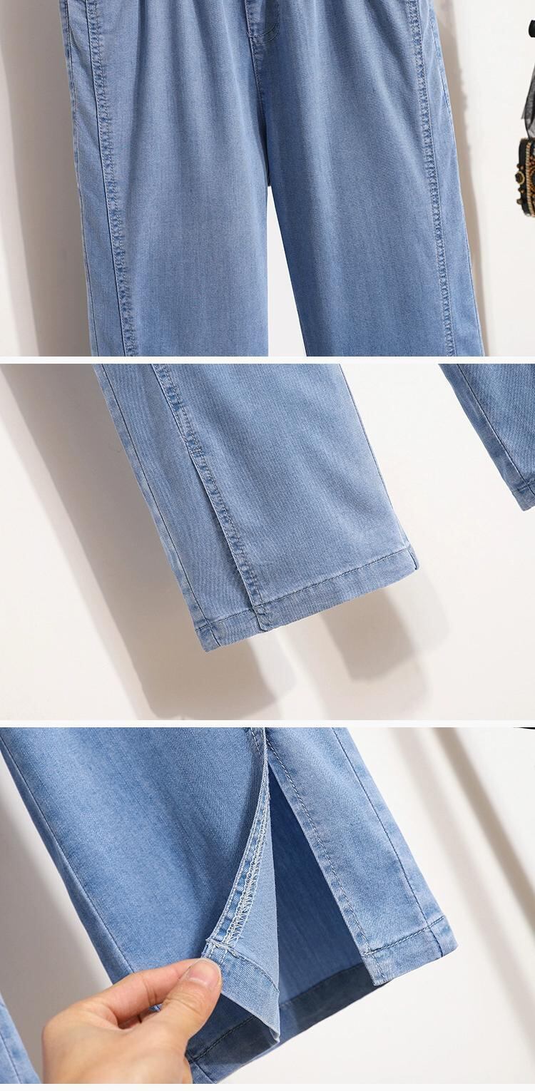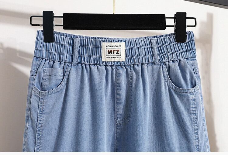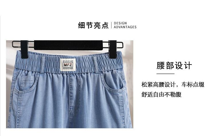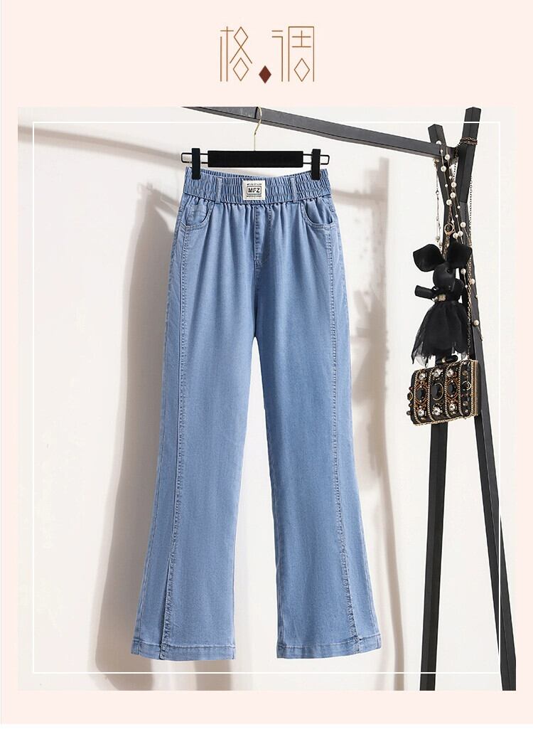 プラスサイズの女性の 2024 ファットシスター夏テンセルジーンズ薄いスリムマイクロフレアパンツルーズ 9 点パンツ レッド 大きめサイズ サマー 夏物 841S1665212504230