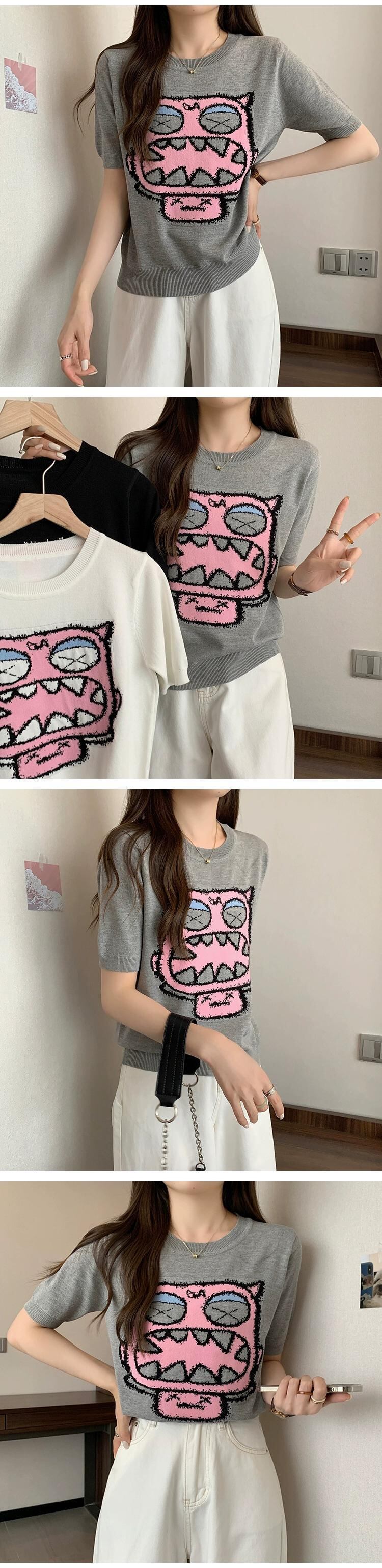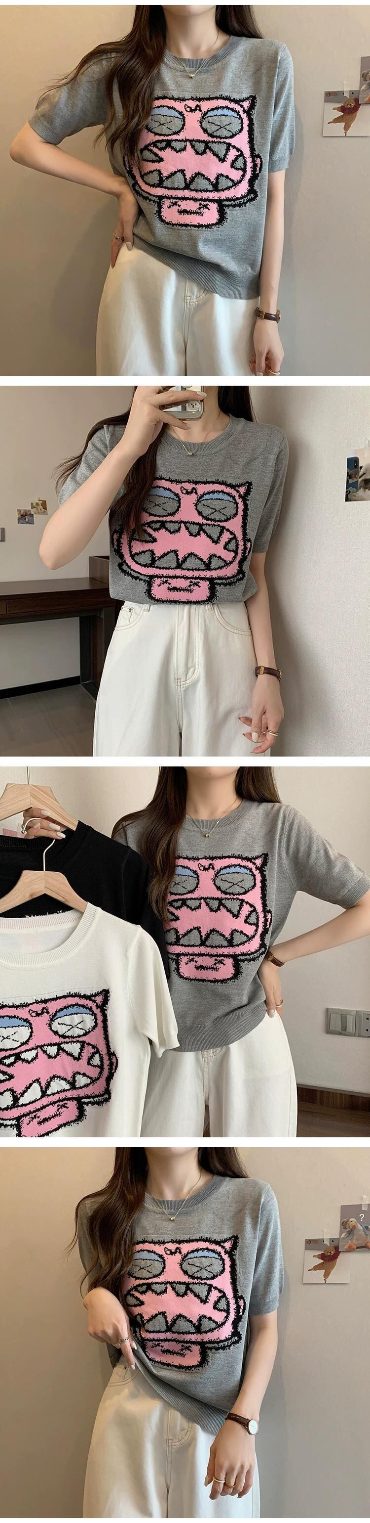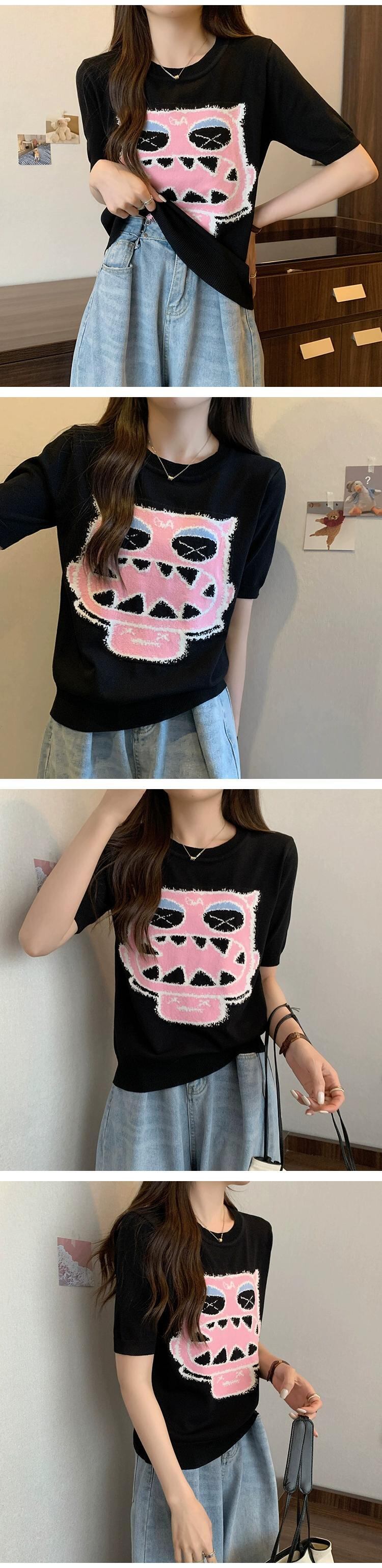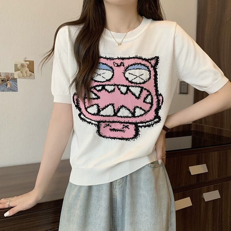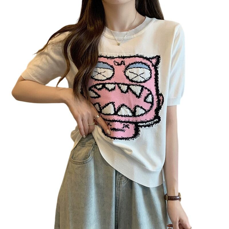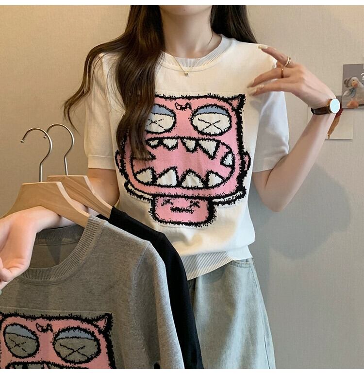 プラスサイズの婦人服 2024 ファットシスター夏新スタイル多用途スリムニット半袖 Tシャツラウンドネックジャカードアイスシルクトップ 大きめサイズ サマー 夏物 Oネック 841S1650782734766