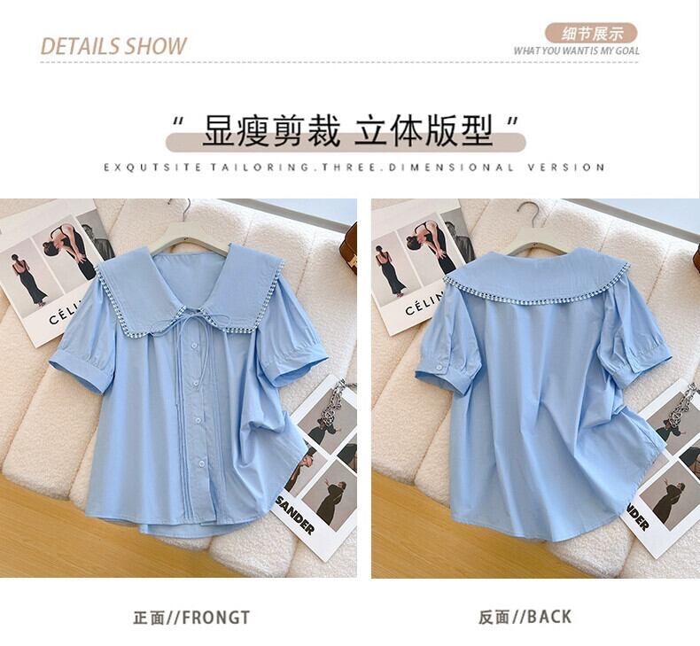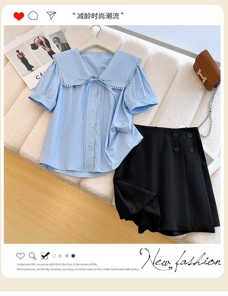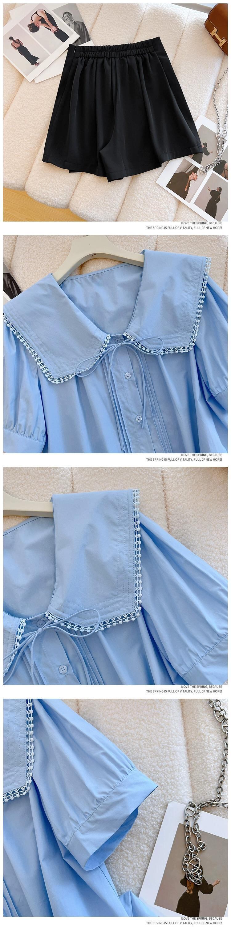 プラスサイズの女性の 2024 夏服脂肪姉妹年齢削減人形襟シャツシックなニッチウエストパンツ 2 点セット 大きめサイズ サマー 夏物 841S1673183117535